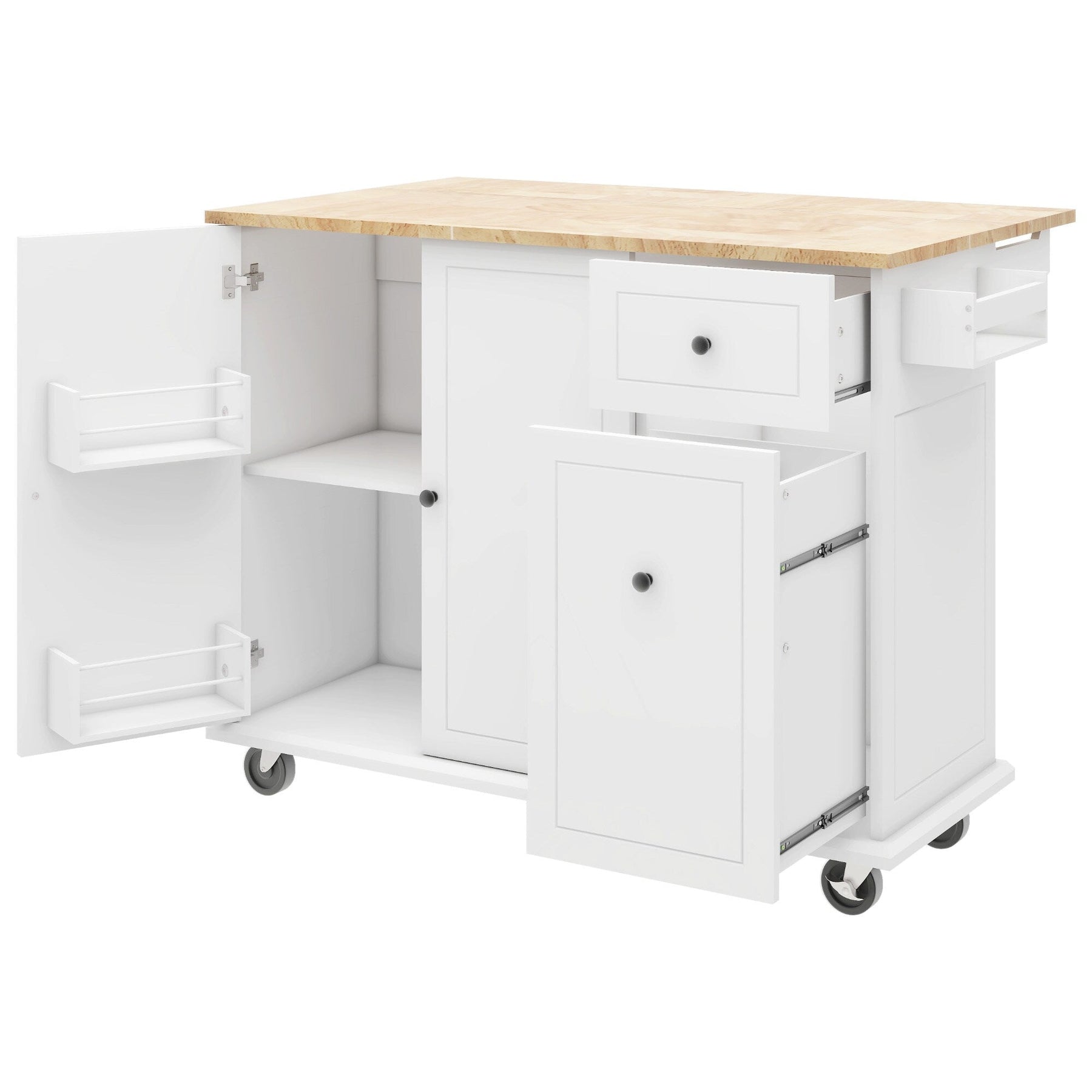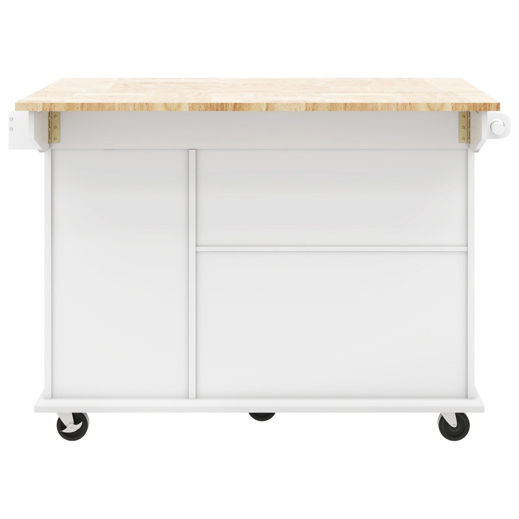BABOOM White Mdf Base with Wood Top Rolling Kitchen Island (28.7-in x 53.9-in x 36.8-in)