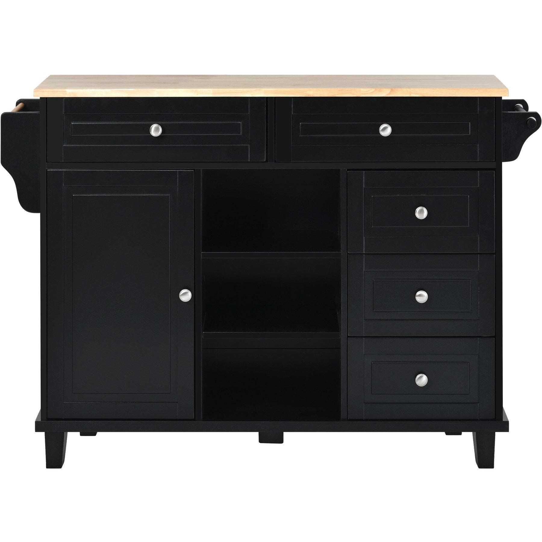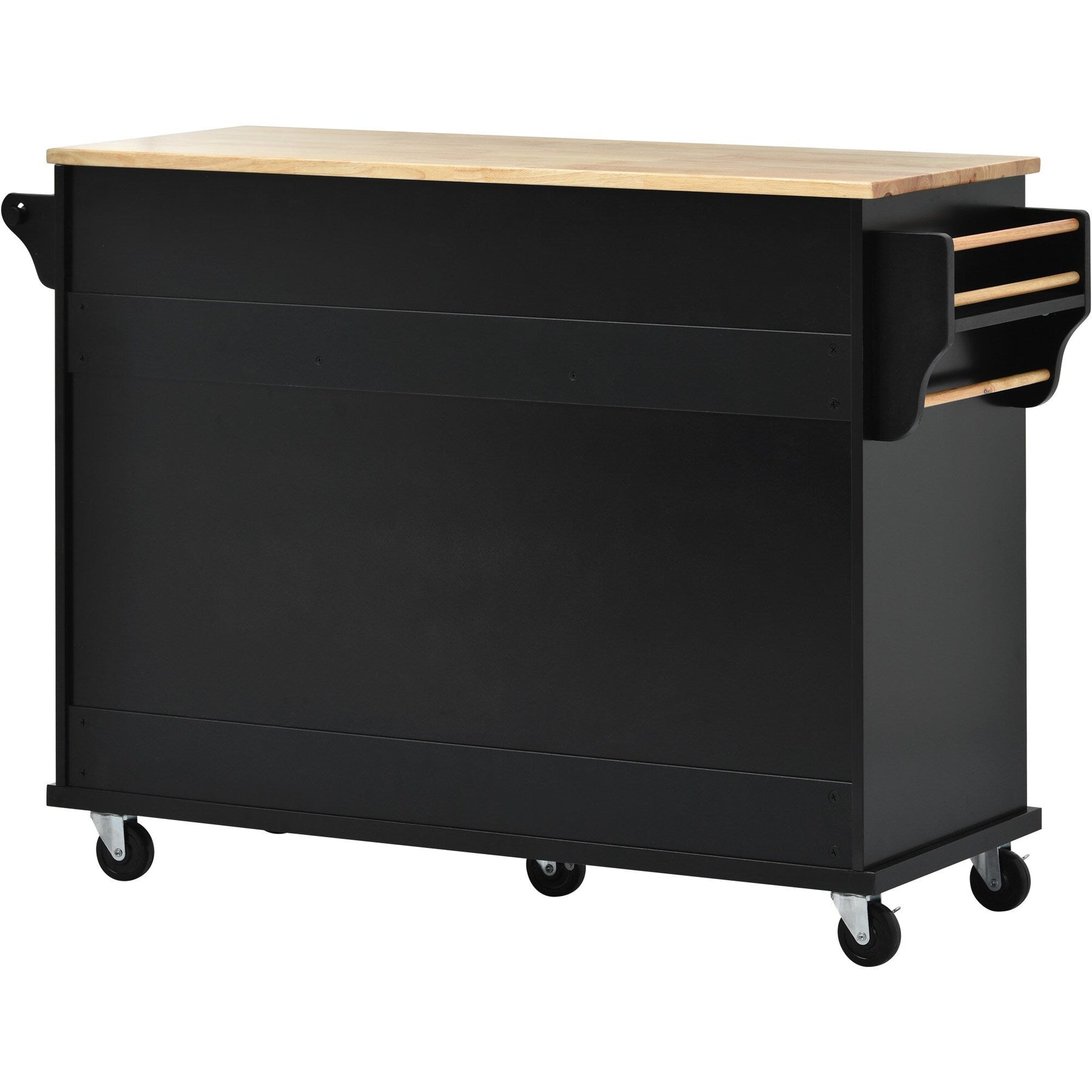 Rolling Kitchen Island with Black Wood Base & Wood Top