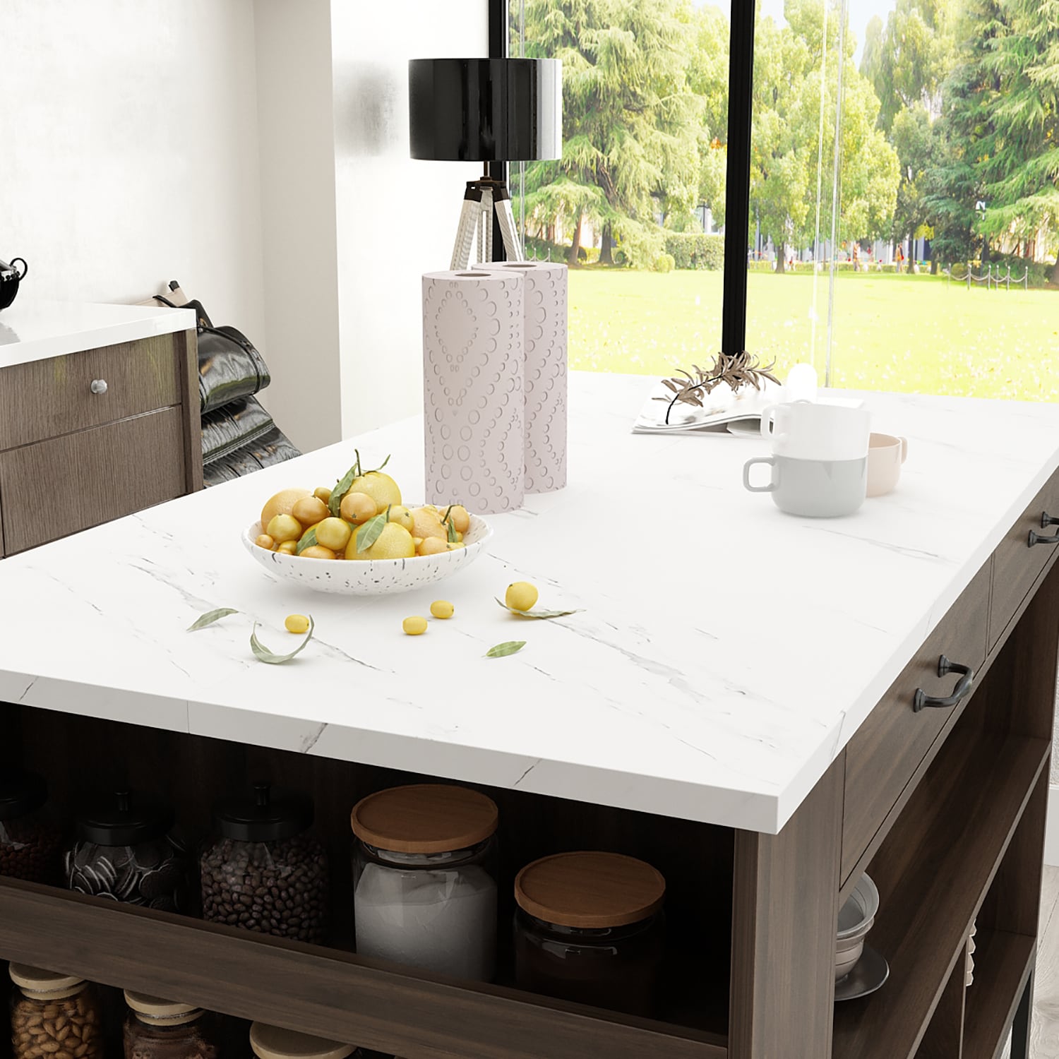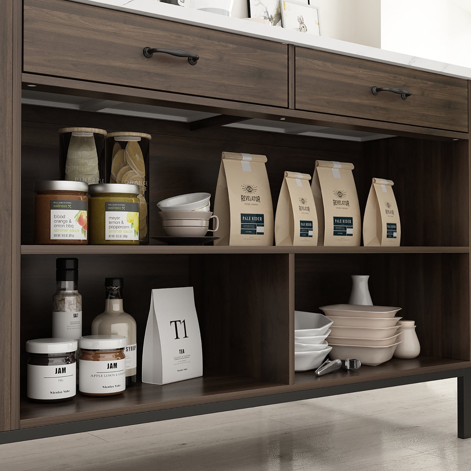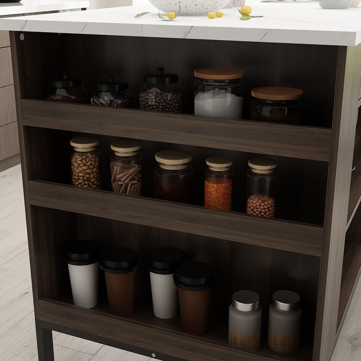• Easy Access: Open shelves keep essentials within reach.