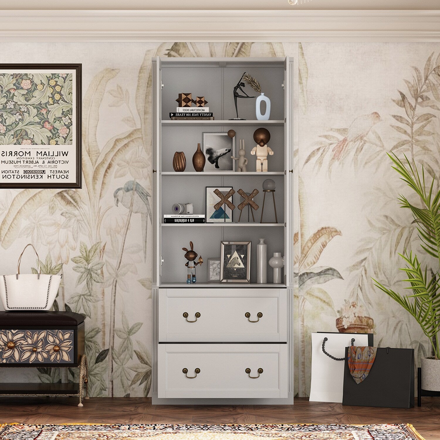 The FUFU&GAGA Contemporary/Modern Gray China Cabinet is a perfect blend of classical elegance and modern design. Featuring ample wine storage, durable construction, and adjustable glass shelves, this cabinet is both a functional and elegant addition to any home or office.