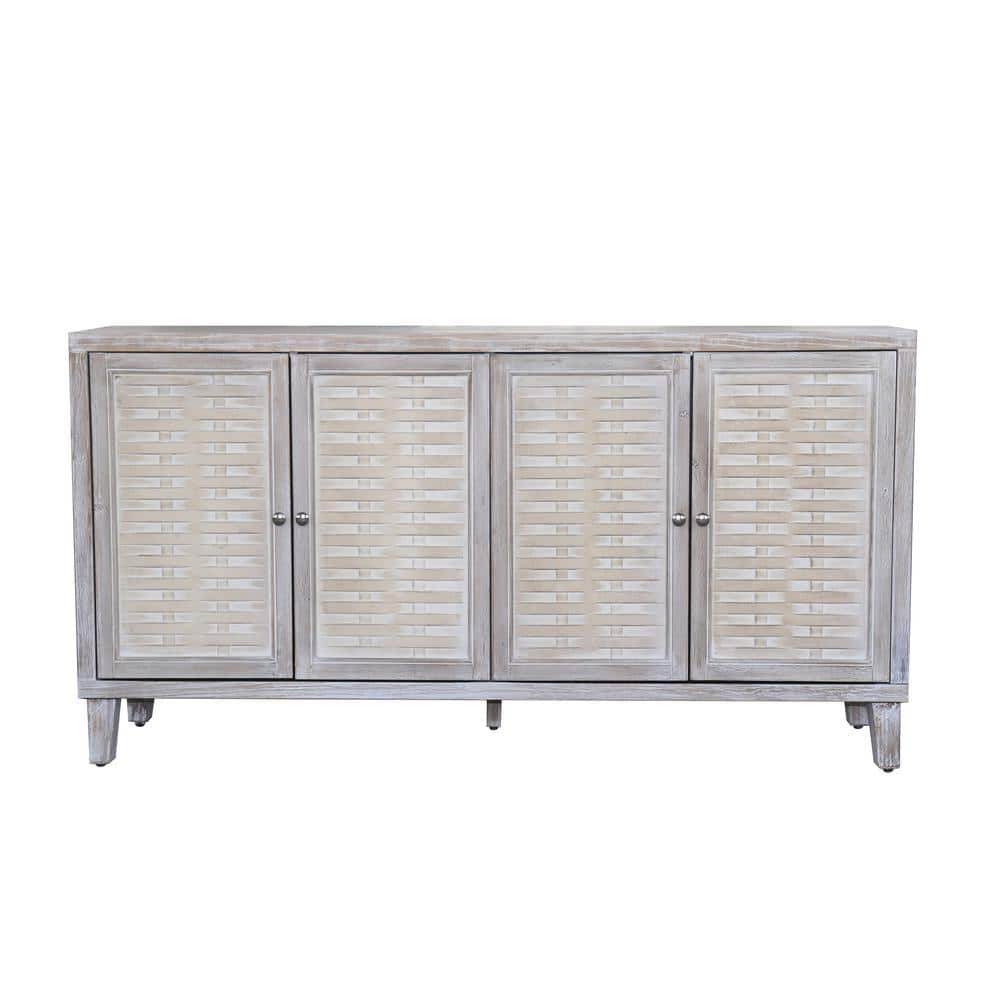 Elevate your home's design with the FUNKOL 4-Door Storage Cabinet, a masterpiece of rustic elegance. Its woven textured doors create visual interest, seamlessly blending practicality with aesthetic appeal. Style it in your living room for a touch of natural warmth, perhaps beneath a decorative mirror or beside a cozy armchair. An essential piece for a sophisticated yet approachable décor, it offers both beauty and bountiful storage.