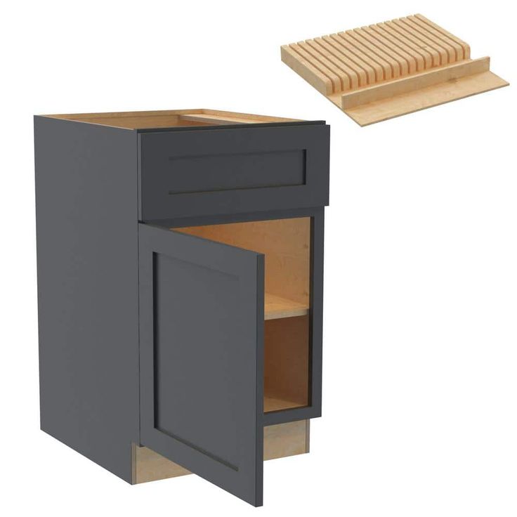 Elevate your kitchen with the Home Decorators Collection Newport cabinet, featuring solid MDF Shaker-style doors in a sophisticated Deep Onyx finish. Built with durable CARB-compliant plywood, this cabinet offers full-extension soft-close drawers and a built-in knife block for convenient kitchen storage.
