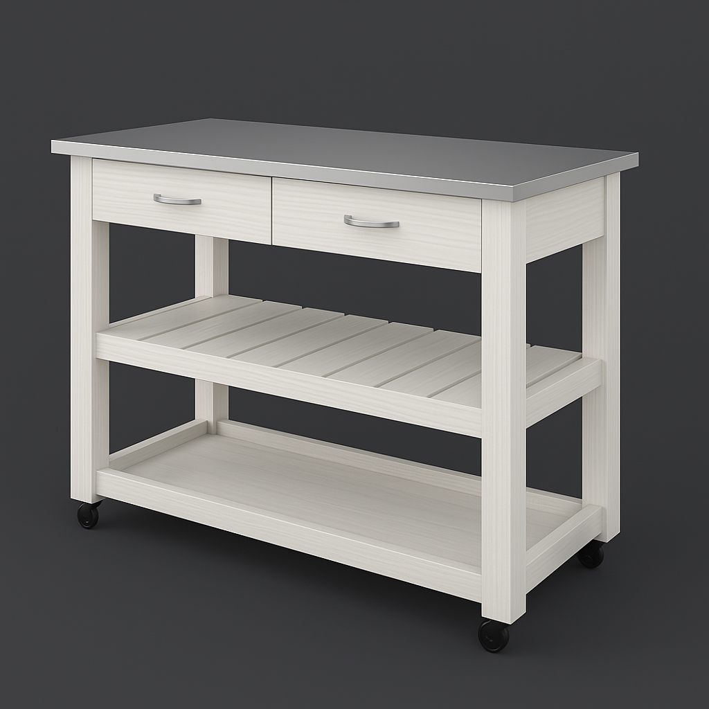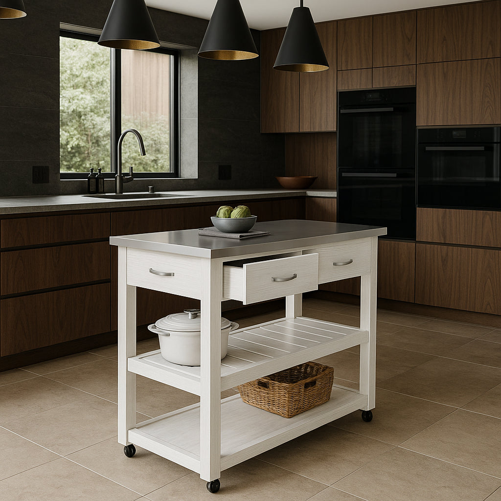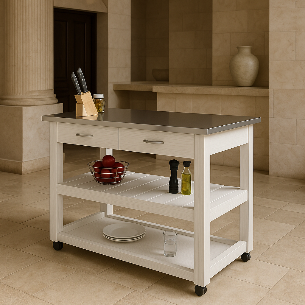 Inval Kitchen Utility Cart with Stainless Steel Top - White