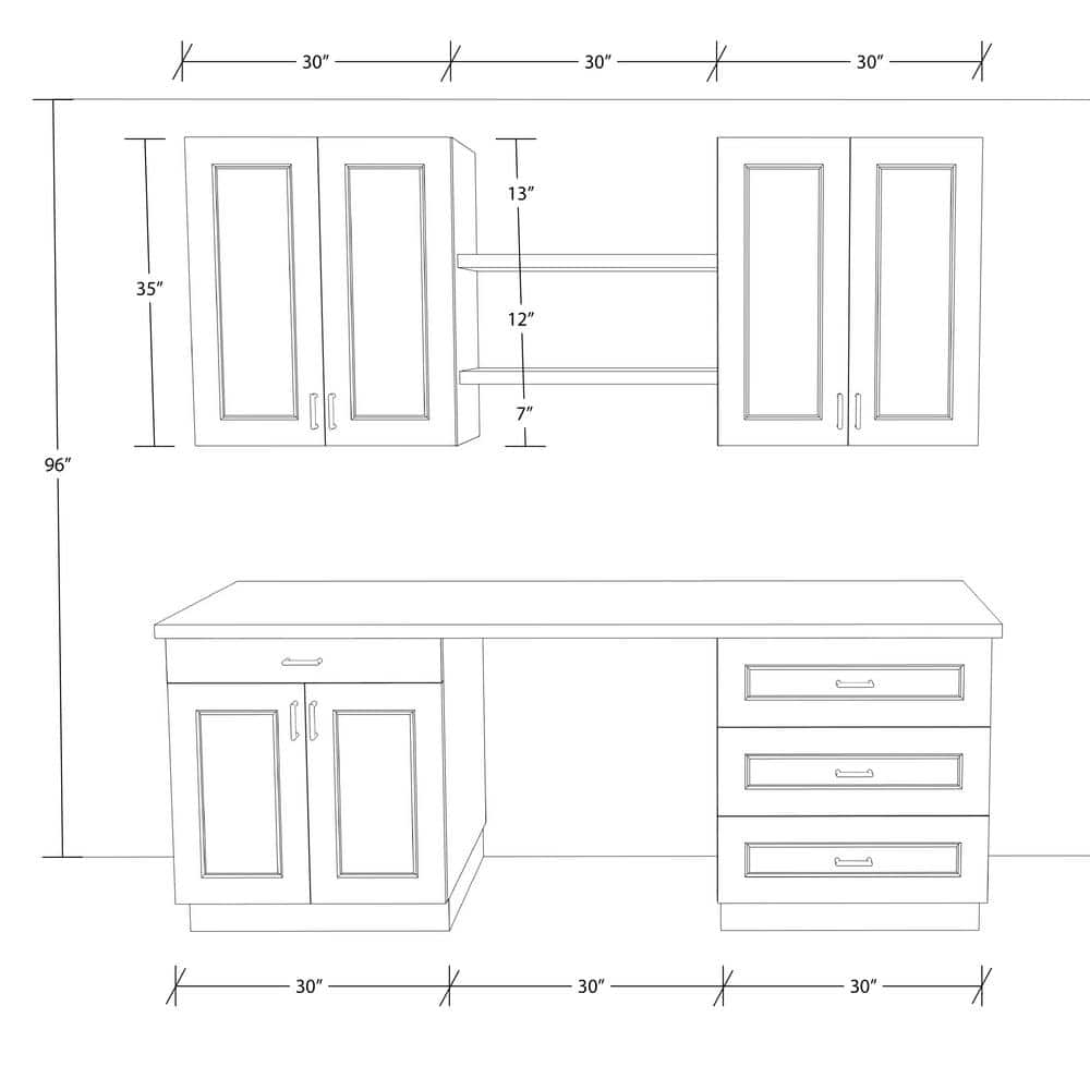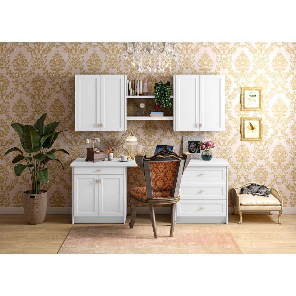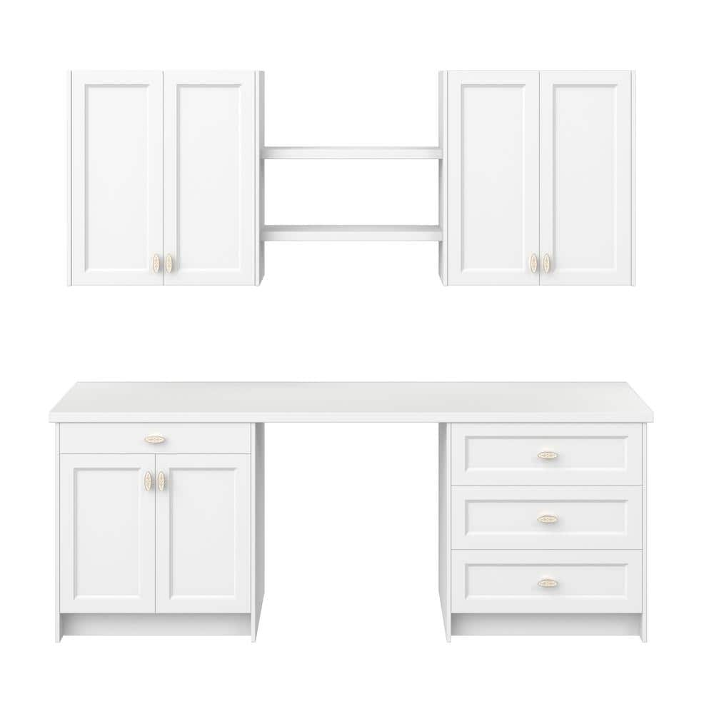 J COLLECTION Alton 90 in. W x 89.5 in. H x 24 in. D Painted Bright White in Shaker Assembled Base Office Cabinet Bundle