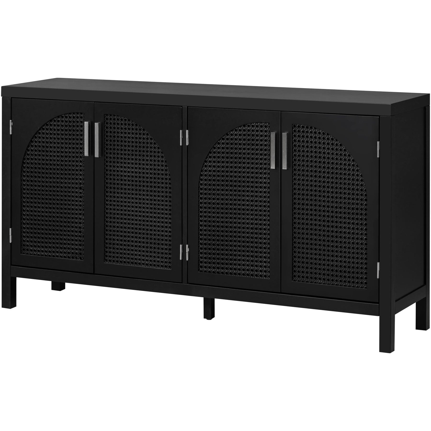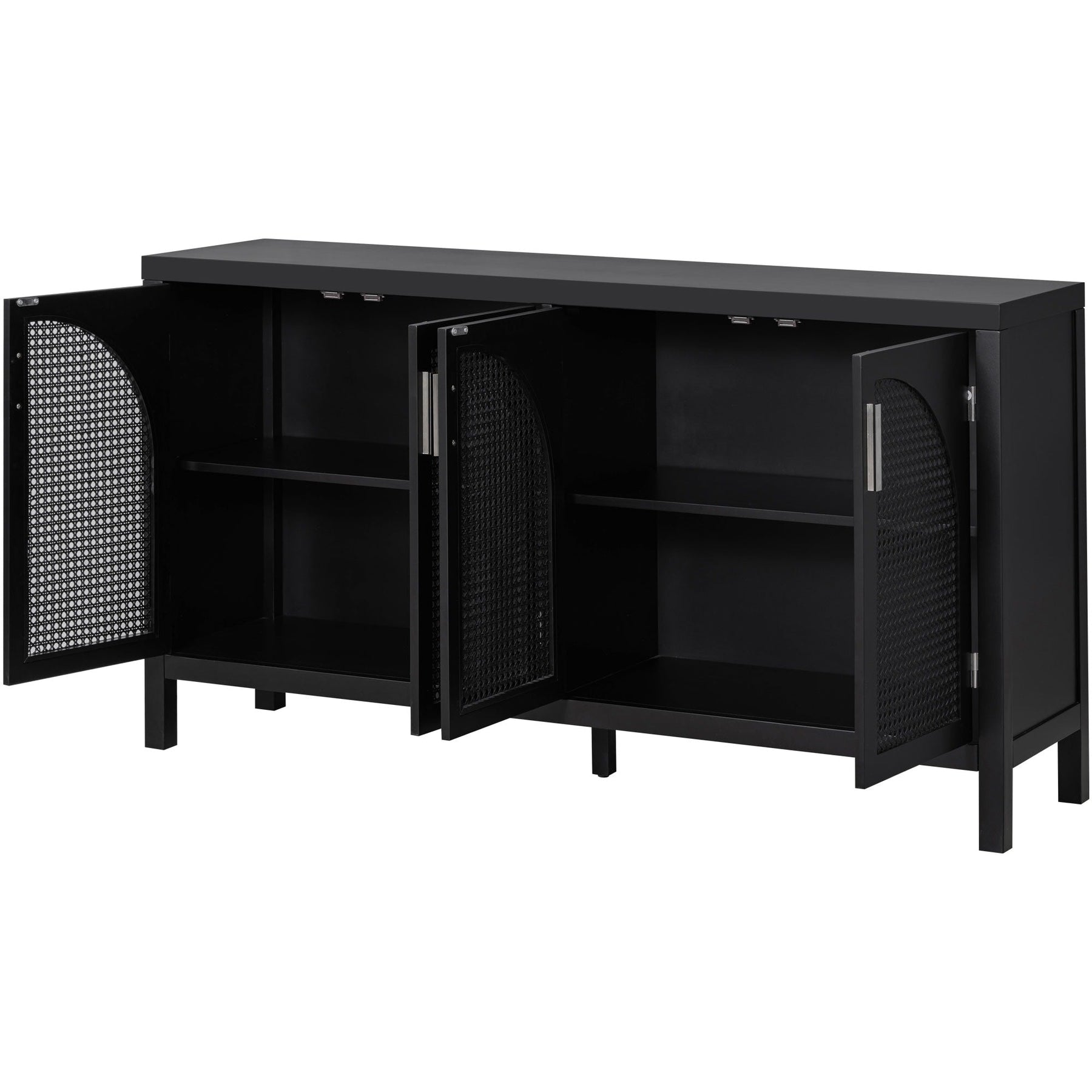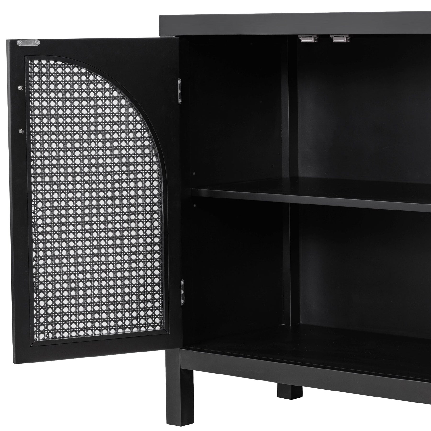 JIMSMAISON The 4-door cabinet with special-shape artificial rattan door panels, convenient metal handles, and a straight-line frame, is an ideal choice for any room in your home