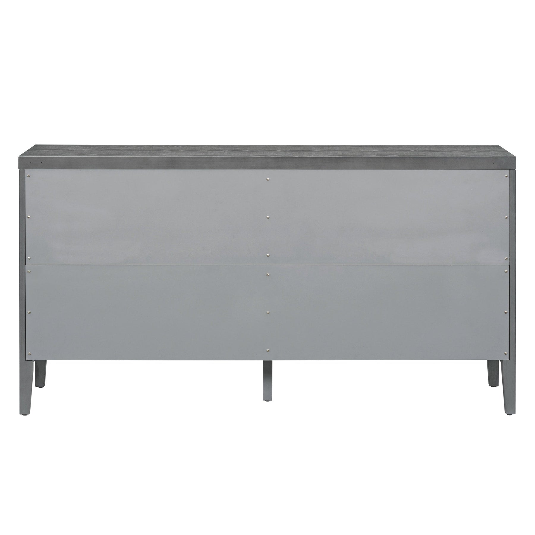 Enhance your space with the JIMSMAISON Gray Rubberwood Sideboard, a fusion of contemporary style and practical storage. Crafted from durable rubberwood and acacia wood, this sideboard offers a textured, painted finish and ample storage for your dining or living room essentials.