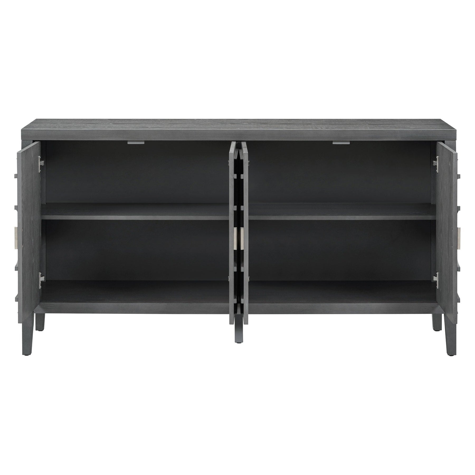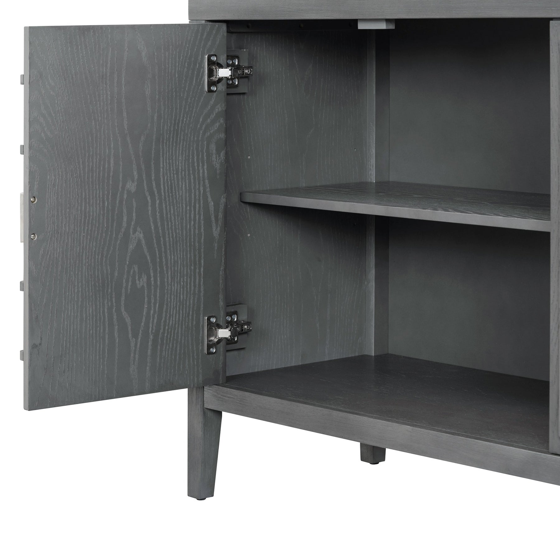 JIMSMAISON This retro sideboard has four doors with rounded lines on the doors to create a three-dimensional look, the country-style cabinet adds a warm atmosphere to your home