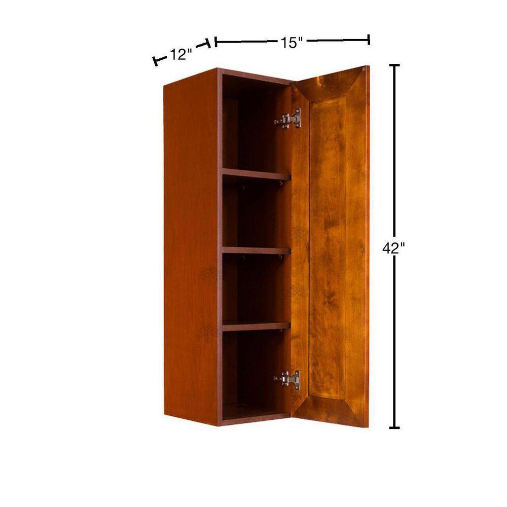 LIFEART CABINETRY Cambridge Assembled 15x42x12 in. Wall Cabinet with 1 Door 3 Shelves in Chestnut