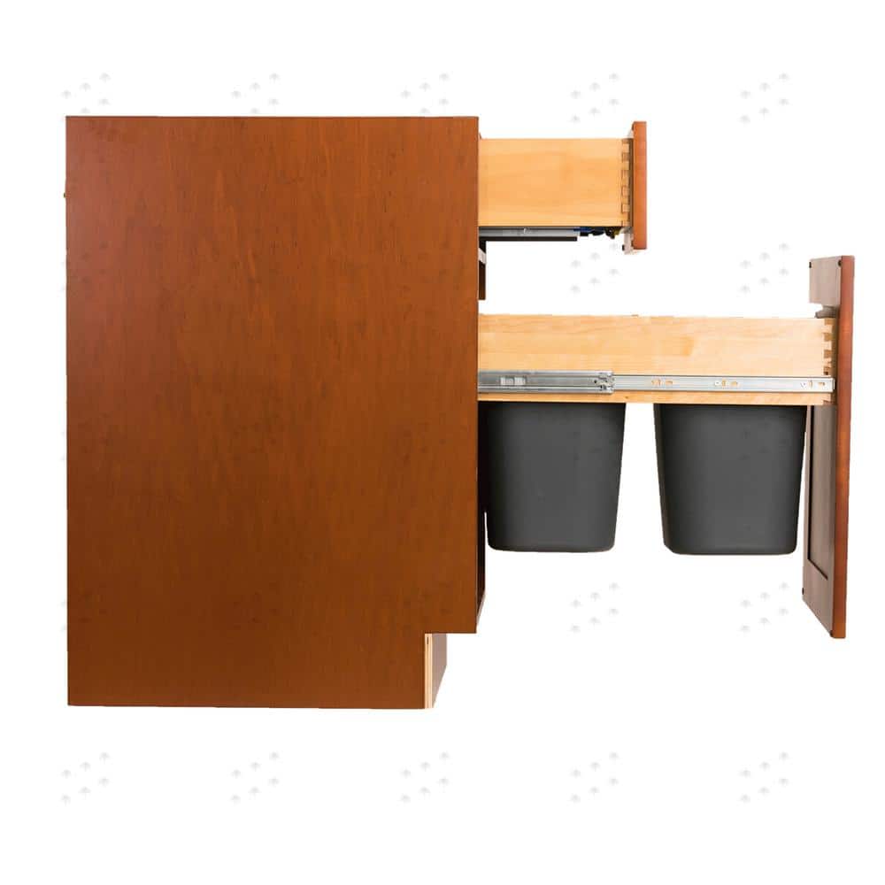 The LIFEART CABINETRY Cambridge Base Wastebasket Cabinet in Chestnut offers a blend of elegance, durability, and practicality. Crafted from solid hardwood and furniture-grade plywood, this cabinet features soft-close doors and drawers, and a full-overlay frameless design for a seamless kitchen look. Enjoy peace of mind with zero-VOC eco-friendly paint for a healthier home environment.
