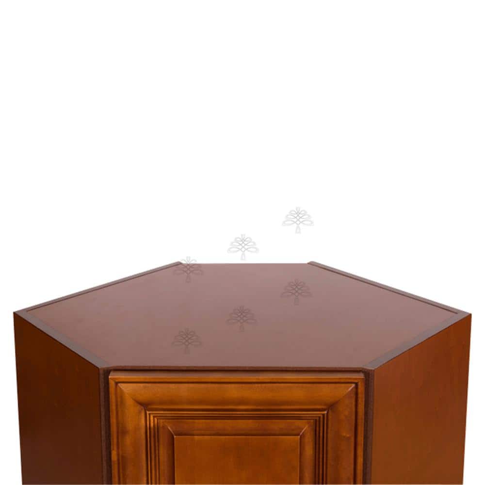 Upgrade your kitchen with the LIFEART CABINETRY Cambridge Diagonal Corner Wall Cabinet, featuring a rich chestnut finish and soft-close hinges for modern convenience. Crafted from eco-friendly, VOC-free materials, this cabinet offers a stylish and sustainable storage solution with its elegant design and efficient use of space.