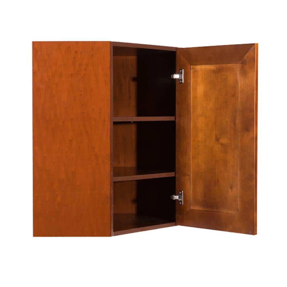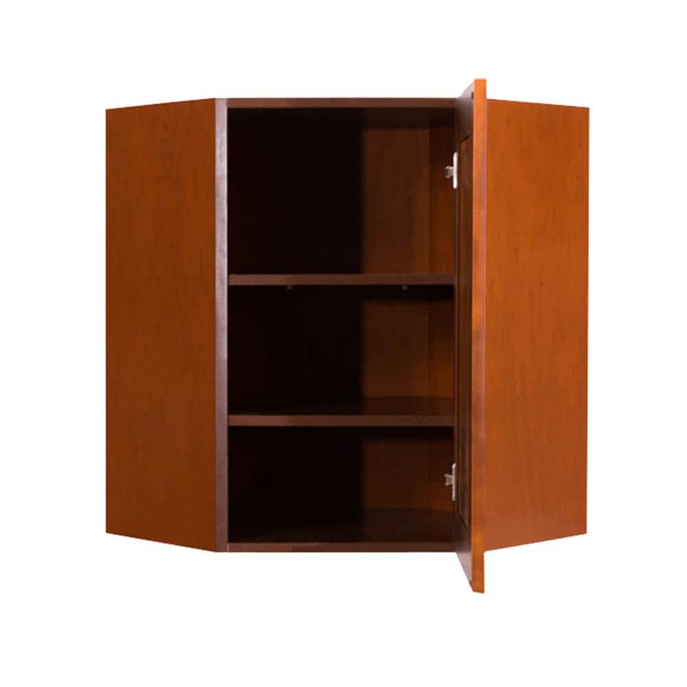 LIFEART CABINETRY Cambridge Assembled 24 in. x 30 in. x 12 in. Wall Diagonal Corner Cabinet with 1-Door 2-Shelves in Chestnut