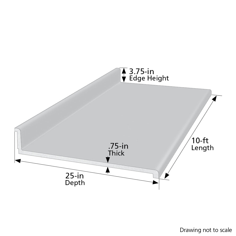 A: Actual size is 120 in L x 25.25 in D with a 3.75-in edge height and approximately 0.75-in top thickness.