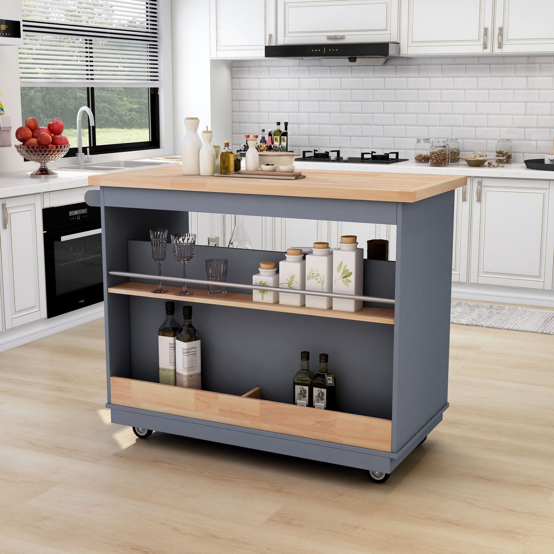 Nestfair Blue Wood Base with Mdf Wood Top Rolling Kitchen Island (21.7-in x 46-in x 35.62-in)