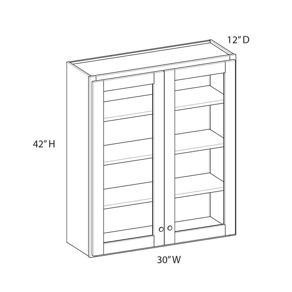 A: This cabinet measures 30 inches in width, 42 inches in height, and 12 inches in depth, fitting comfortably in most standard kitchen spaces.