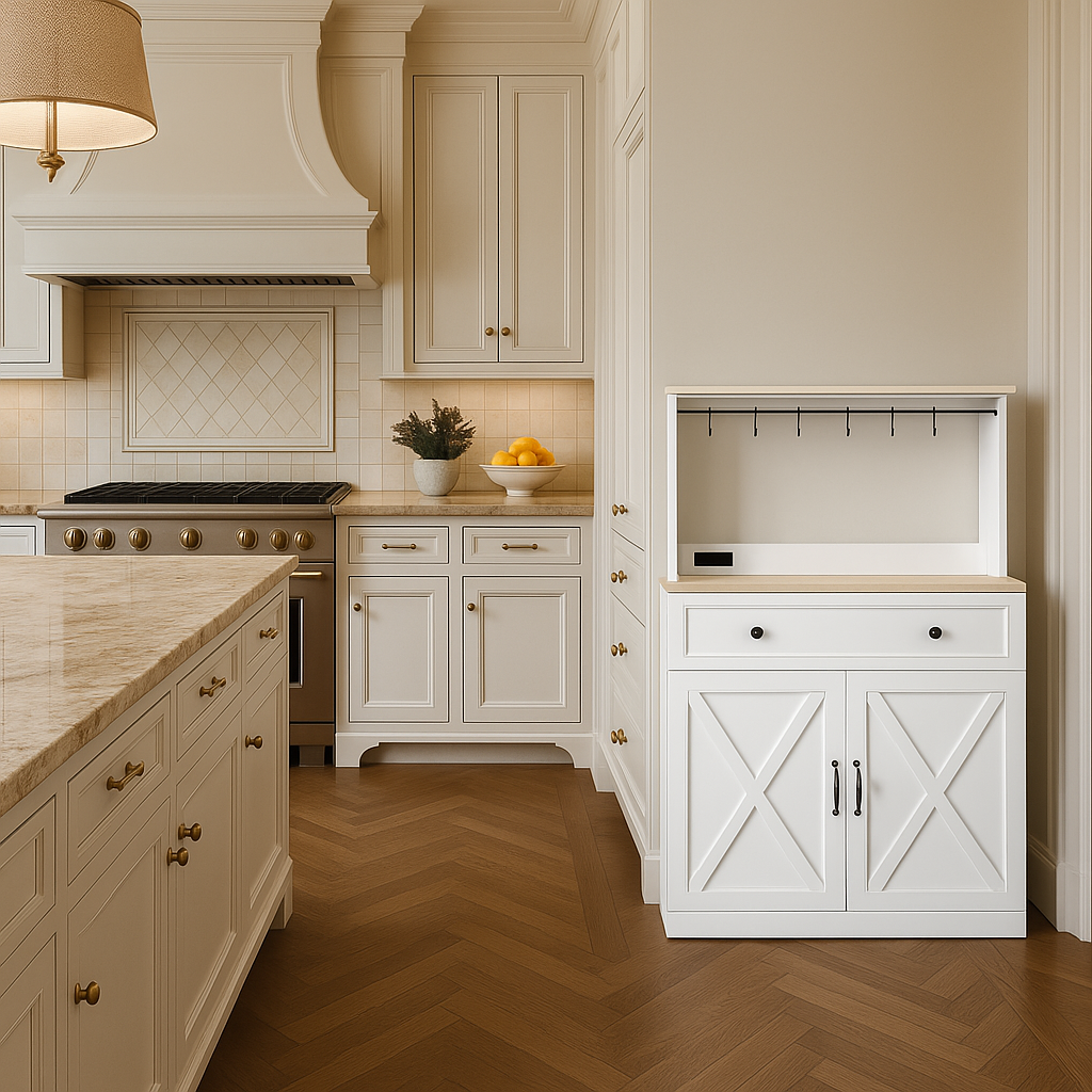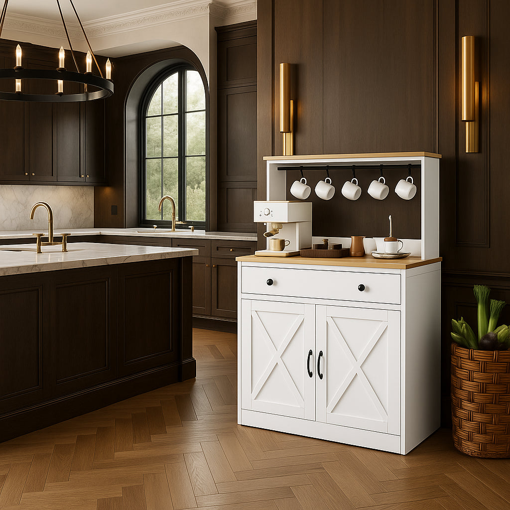 Upgrade your kitchen with the Puluomis Sideboard Pantry, combining style and functionality for a clutter-free space.