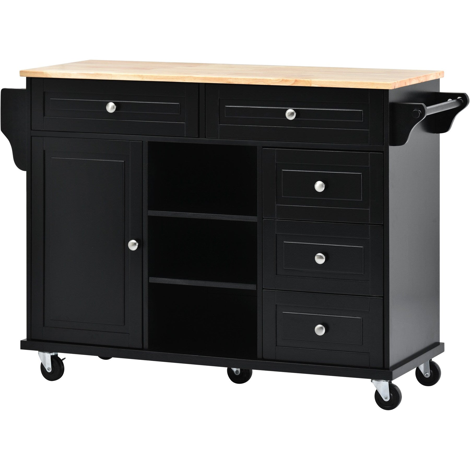 Enhance your kitchen's functionality and style with the Runesay Black MDF Rolling Kitchen Island—click to learn more and bring this essential piece into your home today!