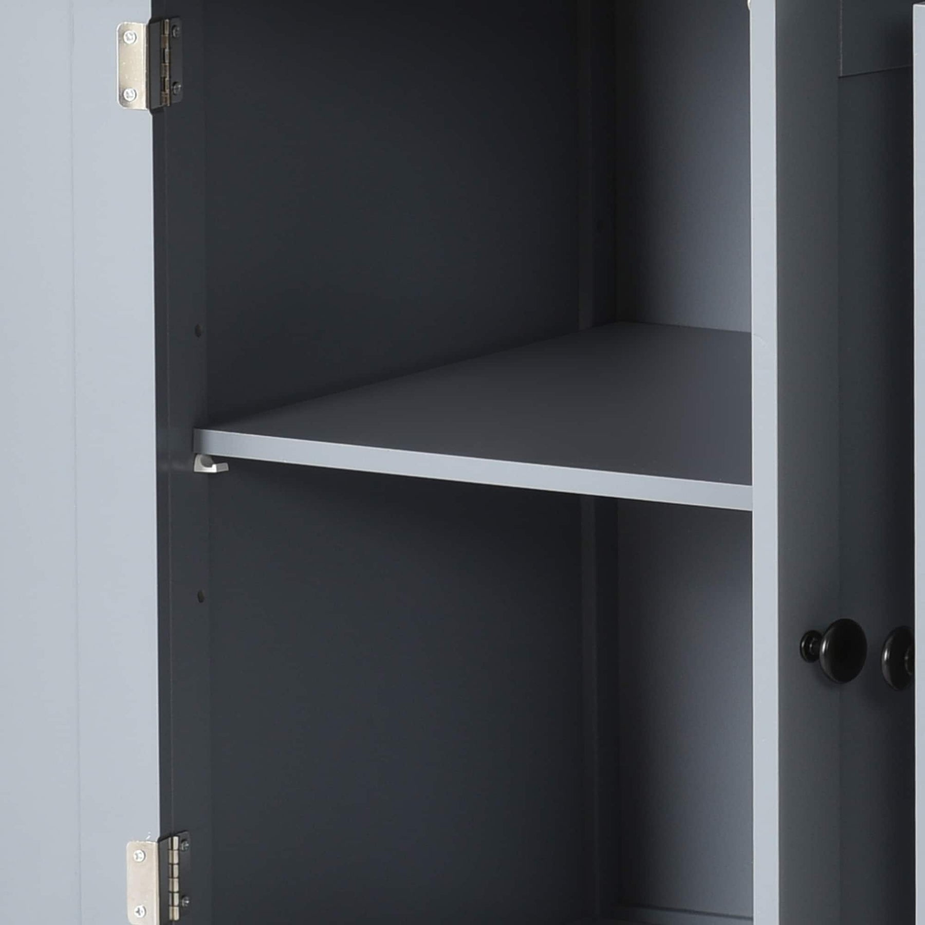 A: No, the shelves inside the cabinet are fixed, providing stable storage options for your kitchen items.