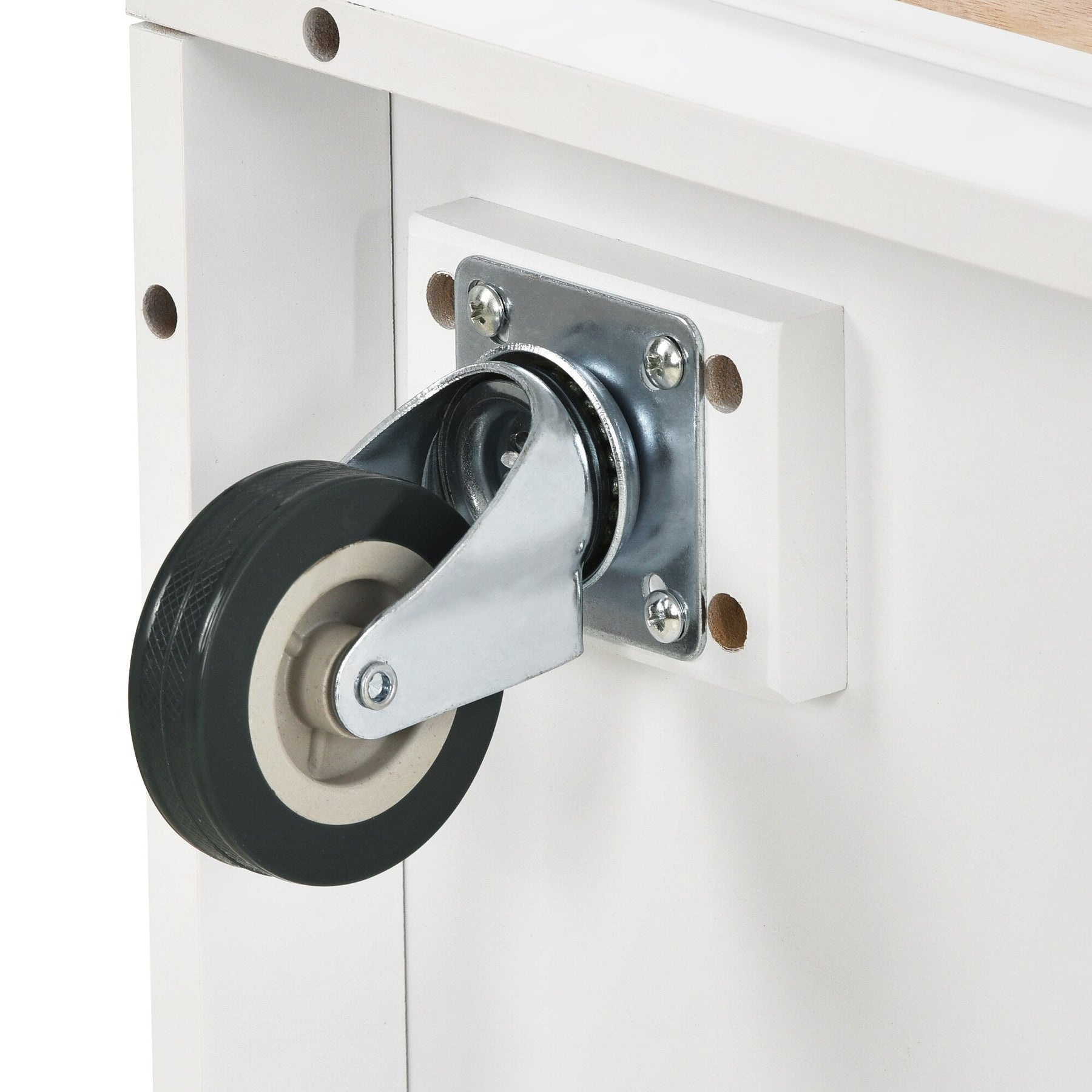 SINOFURN White MDF Base Wood Top Rolling Kitchen Cart