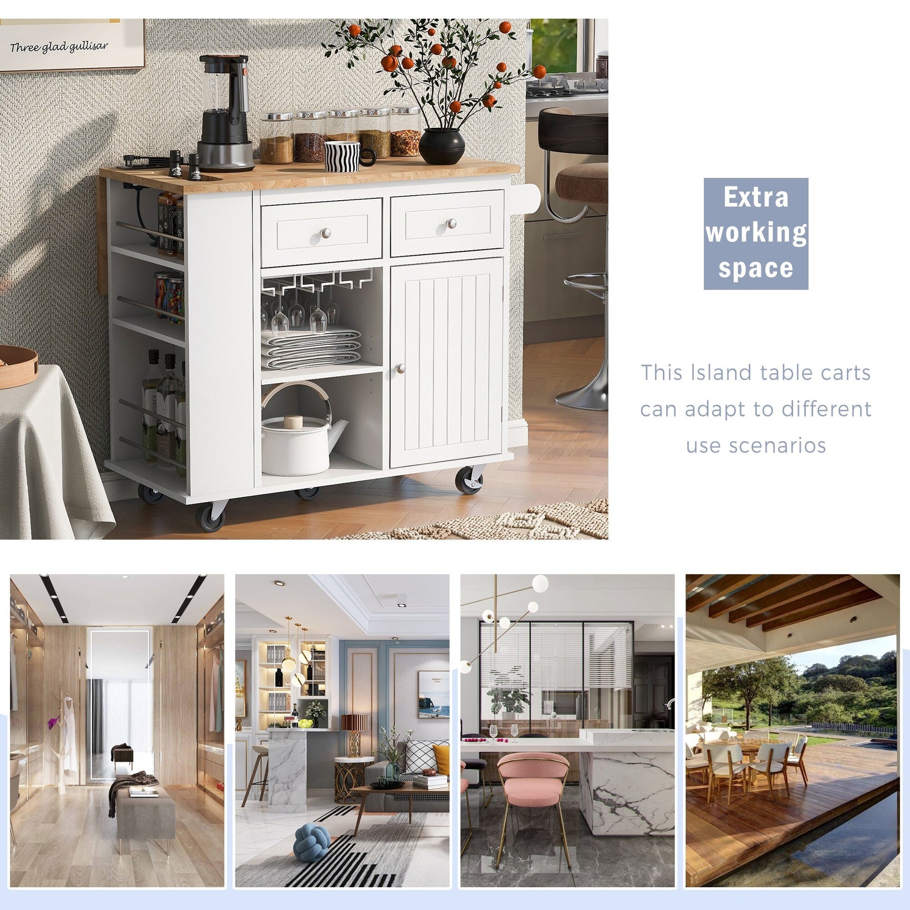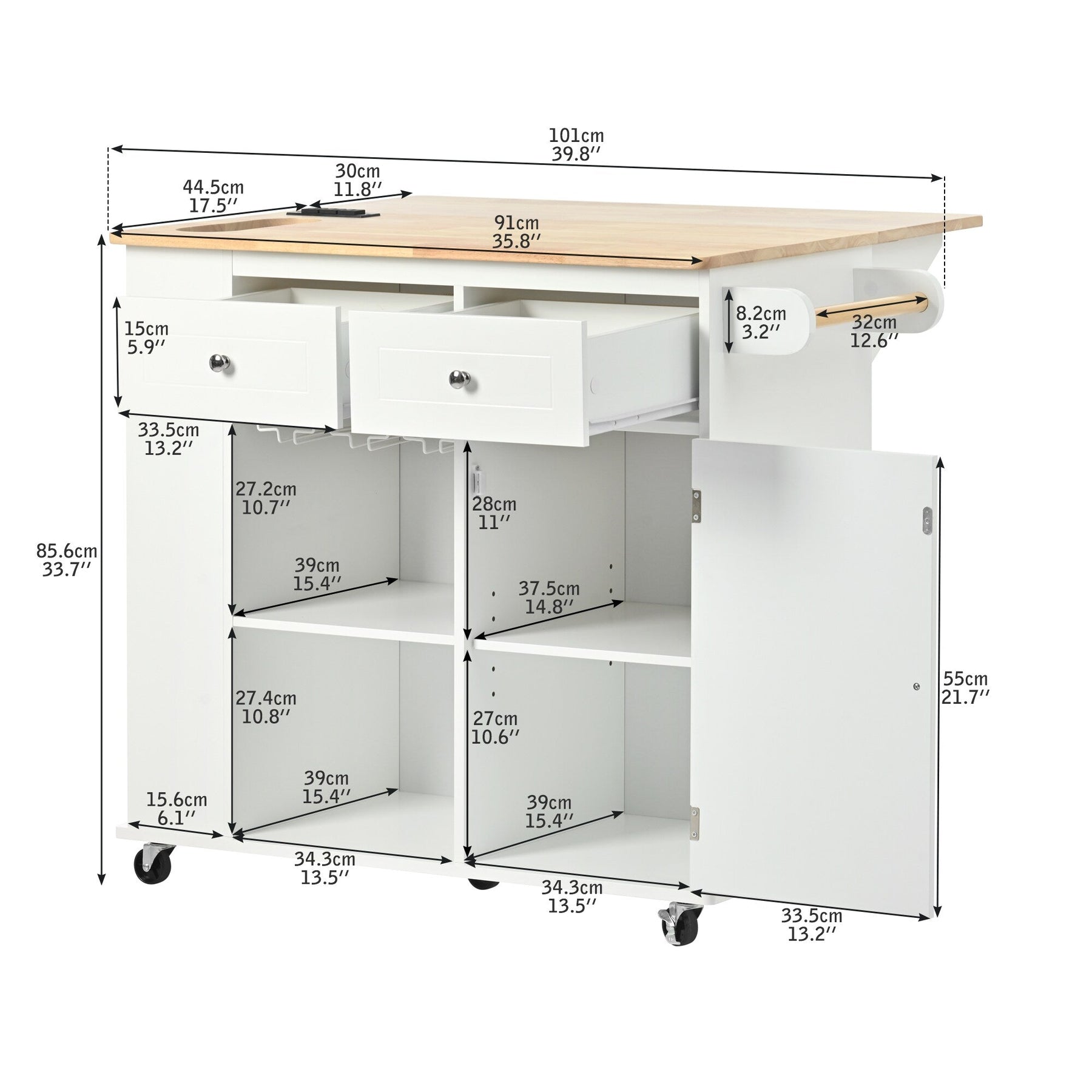 SINOFURN White Mdf Base with Wood Top Rolling Kitchen Cart (29.3-in x 39.8-in x 33.7-in)