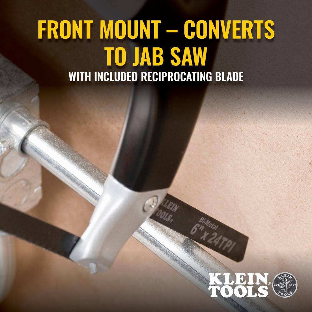 • Reciprocating Compatibility: Front mount supports reciprocating saw blades; converts to jab saw