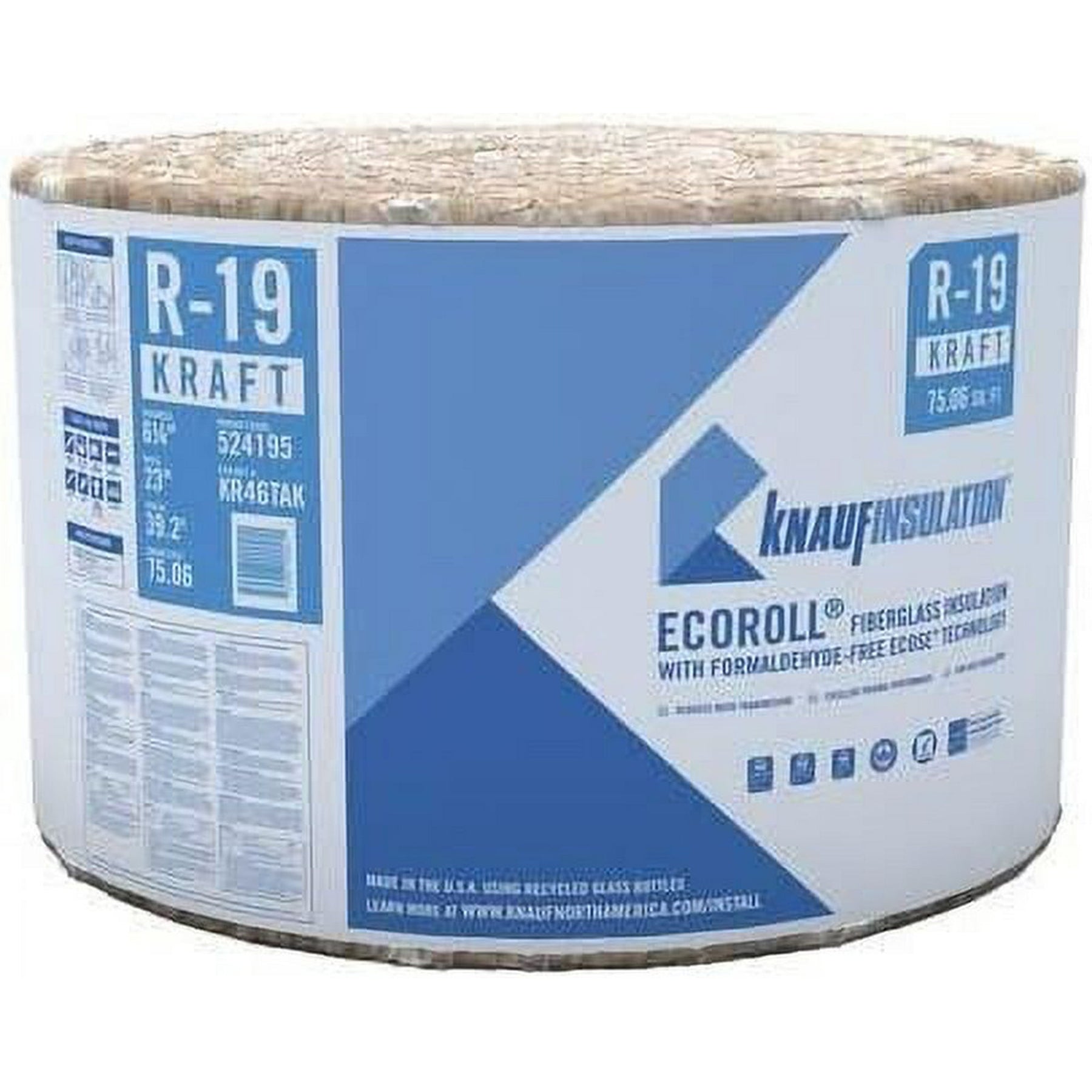 Knauf Insulation EcoRoll R-19 unfaced fiberglass roll delivers reliable thermal and acoustic performance for walls and floors. Sized 6-1/4 in x 23 in x 39.2 ft to cover 75.06 sq ft, it installs easily and is made with formaldehyde‑free ECOSE Technology for better indoor air quality.