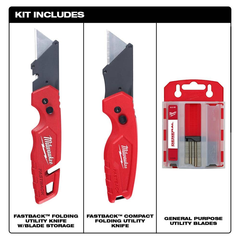 Milwaukee FASTBACK Folding Utility Knife Set (2-Piece) with Utility Blade 50-Pack