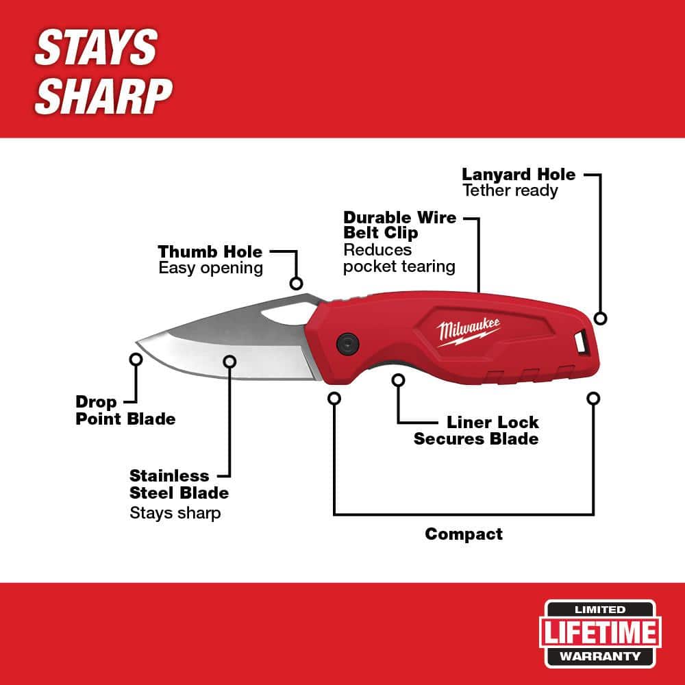 Milwaukee FASTBACK Stainless Steel Folding Knife with 2.95 in Blade and Compact Folding Knife with 2.5 in Blade (2-Piece)