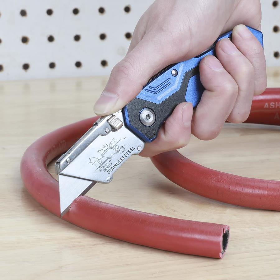 Aluminum handle+ stainless steel head for heavy duty and stronger Quick blade change mechanism Includes 11pc blades for replacement