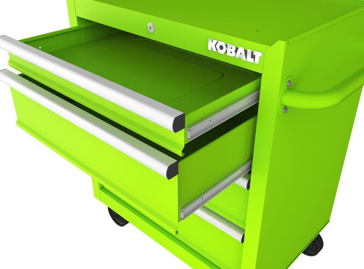 This Kobalt 4-drawer steel rolling tool cabinet offers ample storage space while being highly durable. The 33-inch height allows for comfortable access to tools and the green color adds a touch of style. With smooth rolling casters and a sturdy steel construction, this cabinet is a must-have for any serious handyman.