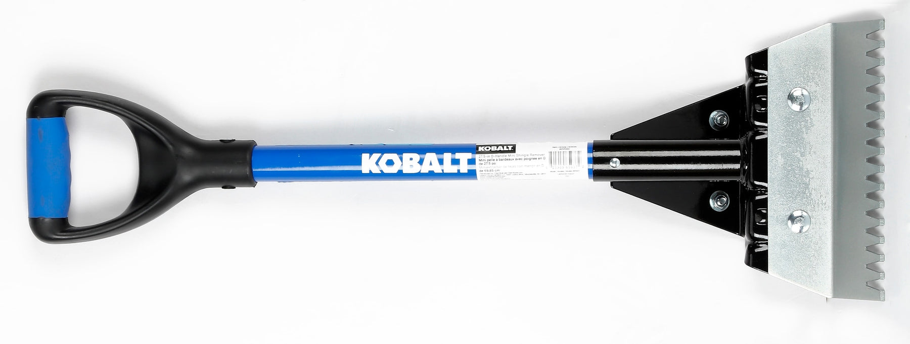 This Kobalt roof shingle remover delivers fast tear-off with a 9-in serrated, replaceable steel blade and a comfortable D-handle. The durable fiberglass handle and cushioned grip provide control and reduced fatigue for asphalt and fiberglass shingle removal.