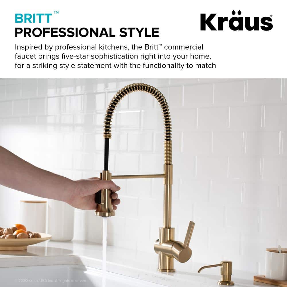 KRAUS Britt Single-Handle Spring Coil Kitchen Faucet in Spot Free Antique Champagne Bronze