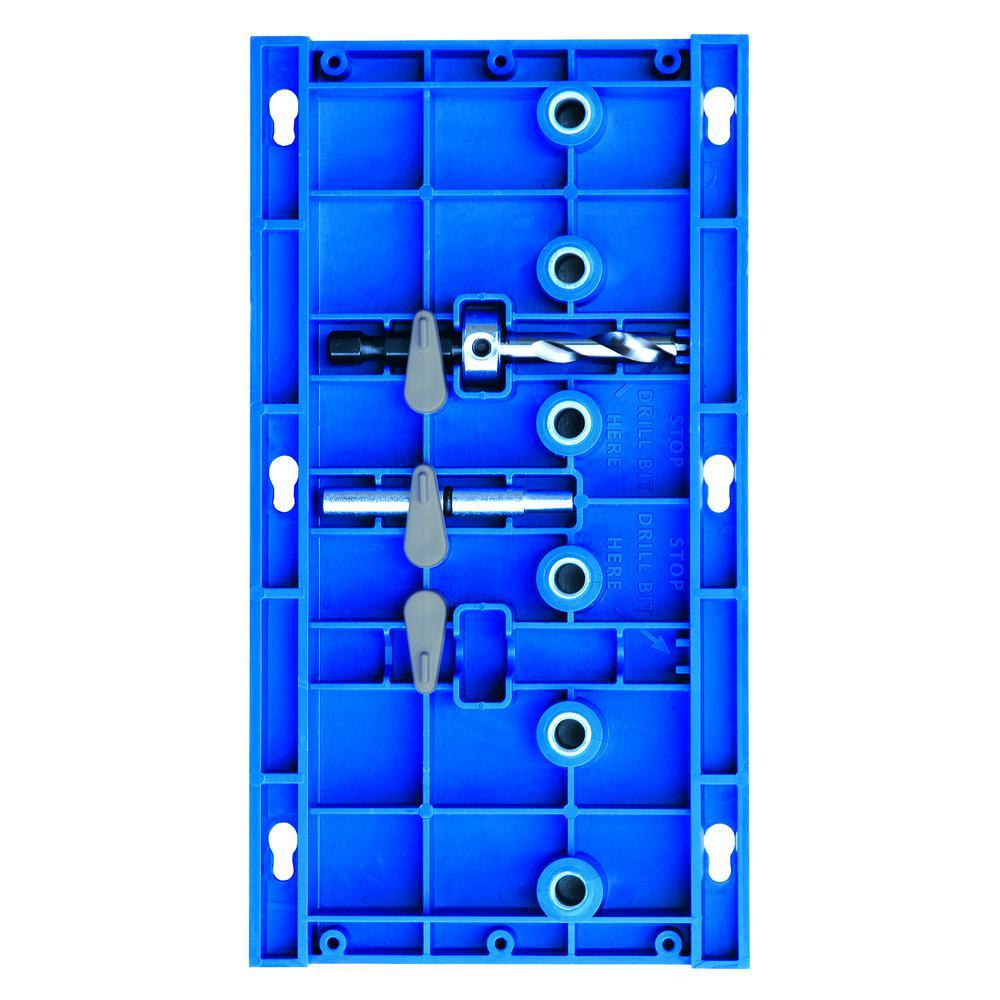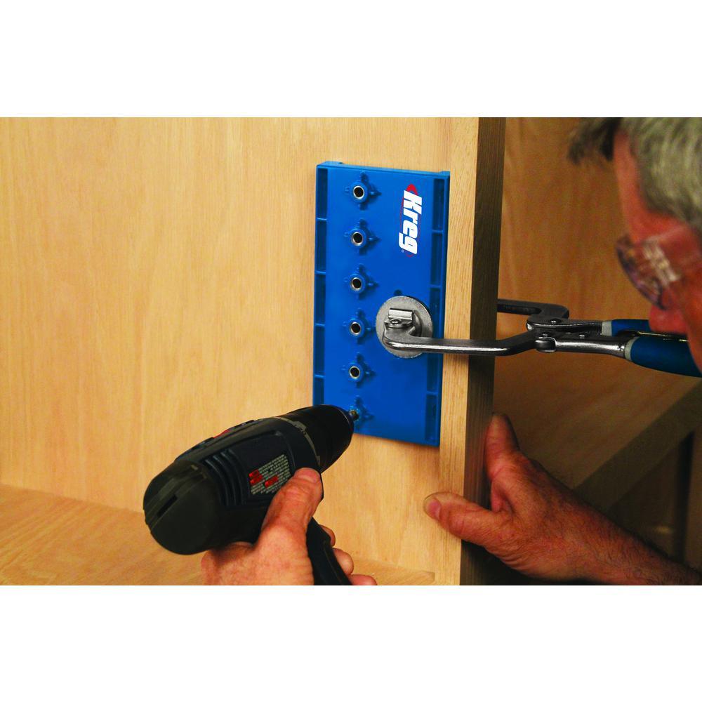 • 6 hardened-steel drill guides allow perfectly vertical holes for wobble-free shelf placement