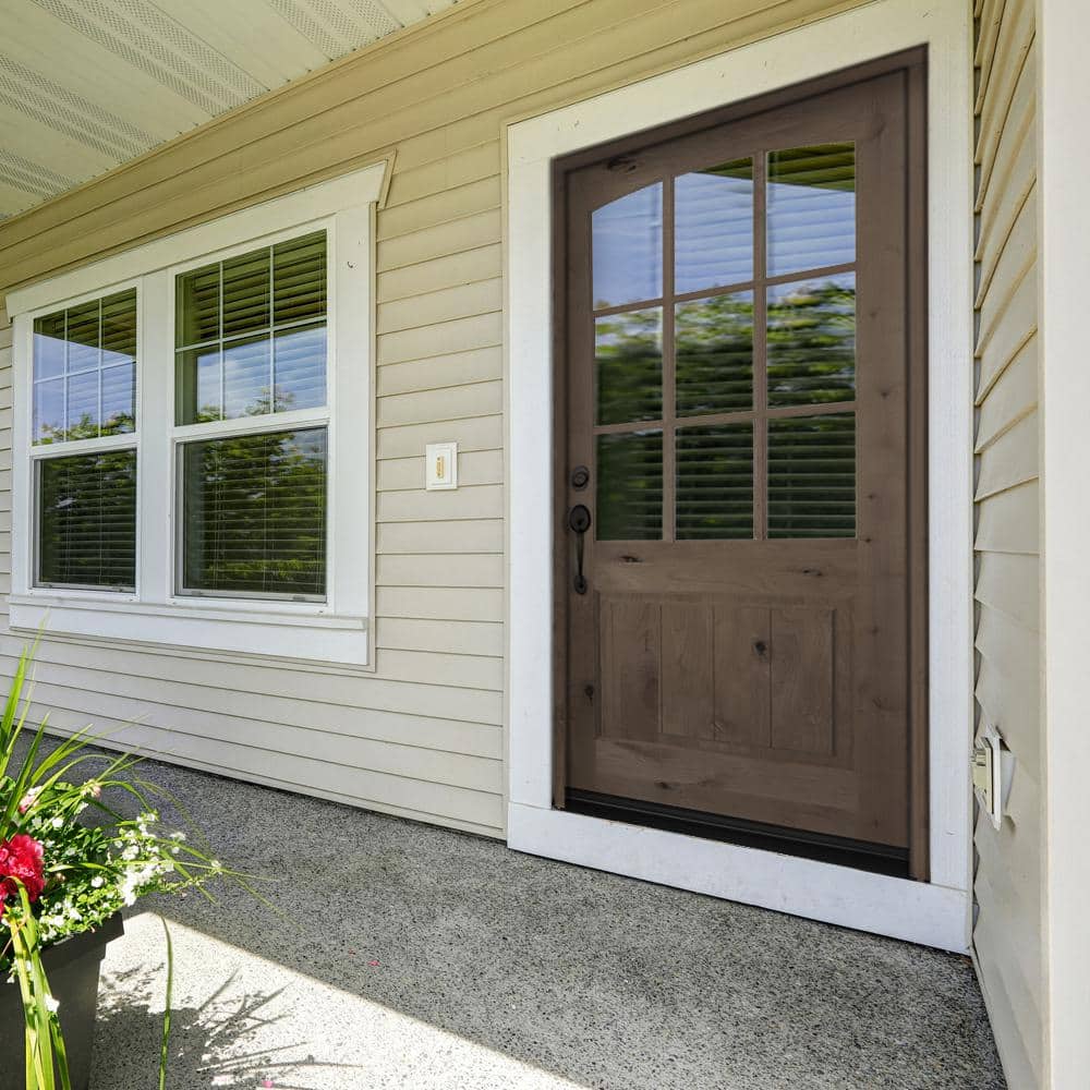 - Authentic Knotty Alder: Visible dark knots and rich grain for a rustic, one-of-a-kind entry