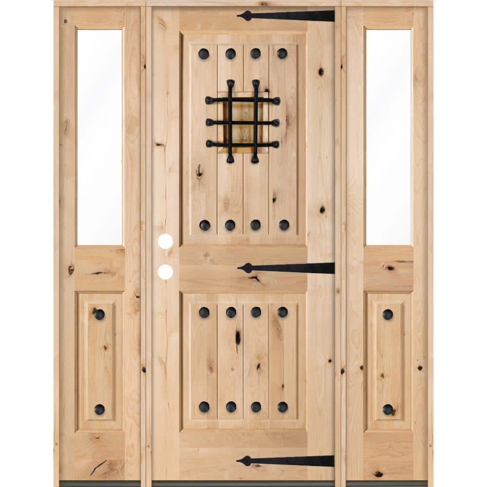 60 in. x 80 in. Mediterranean Alder Sq-Top Clear Low-E Unfinished Wood Right-Hand Prehung Front Door with Half Sidelites by Krosswood Doors