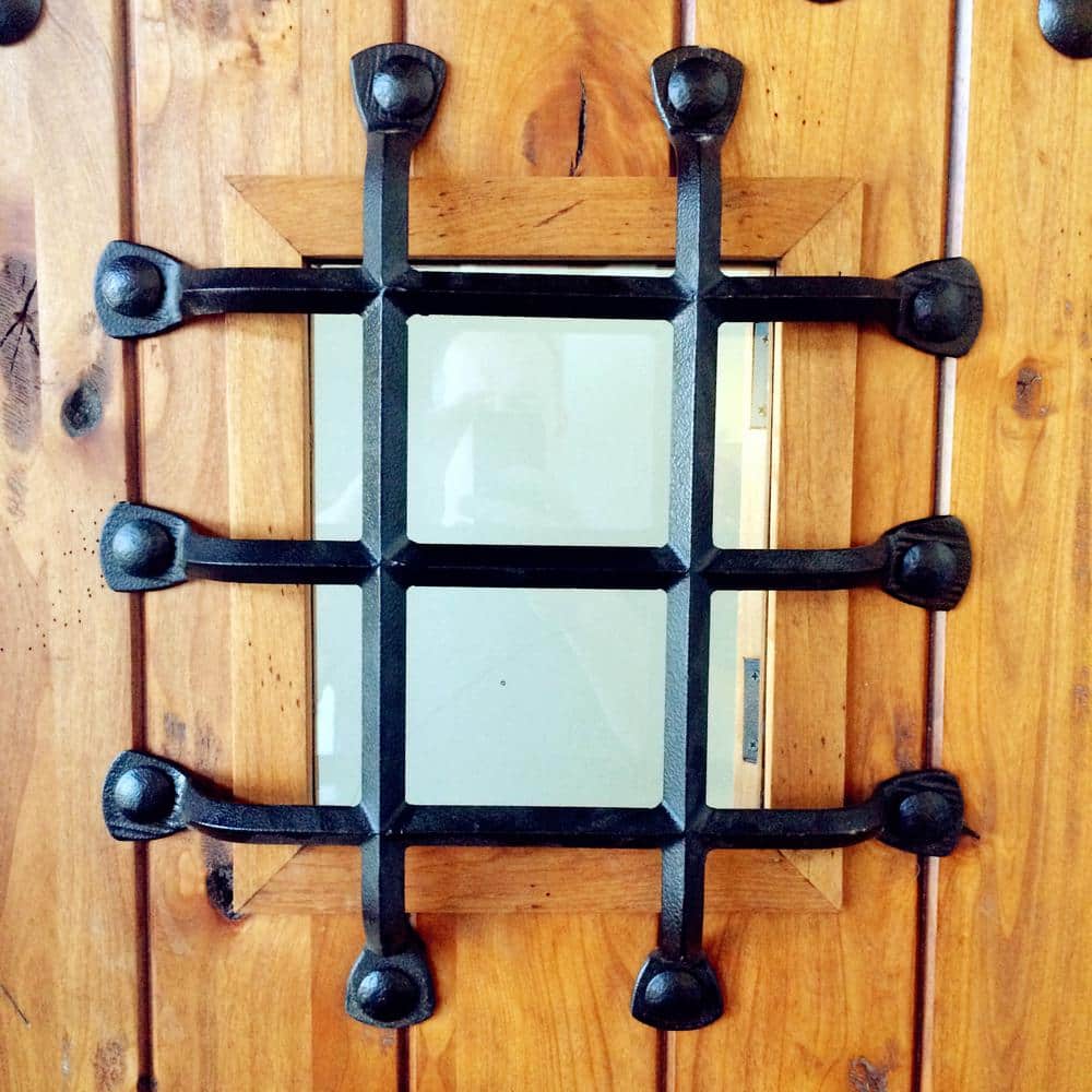 | Decorative Elements | Speakeasy window with wrought iron grille; decorative clavos; strap hinge |