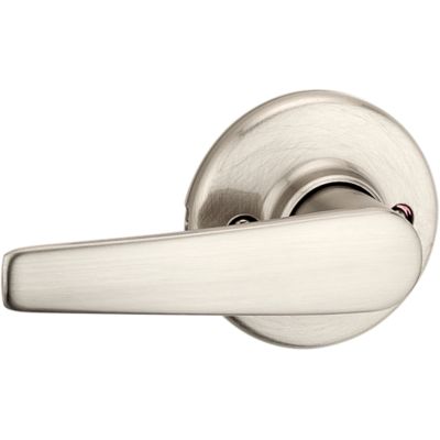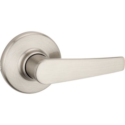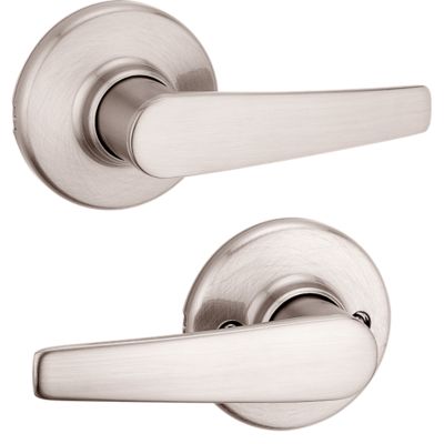 A clean, modern passage lever for halls and closets, the Kwikset Delta installs quickly and works on left- or right-handed doors. Grade 3 certified and ADA compliant, it features a durable satin chrome finish and a round-corner latch for standard bores.