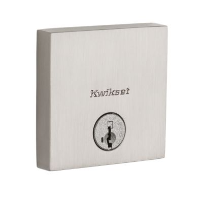 A contemporary square-profile deadbolt from Kwikset’s Signature Series, built for exterior doors needing keyed security. Features SmartKey Security for fast re-keying and protection against advanced break-in techniques, plus a Satin Nickel finish that complements modern hardware.