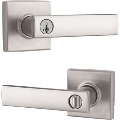 A contemporary square-door lever from Kwikset’s Vedani family, designed for exterior keyed entry. Features SmartKey Security for quick, DIY re-keying and Grade 2 strength to fit standard door preparations.