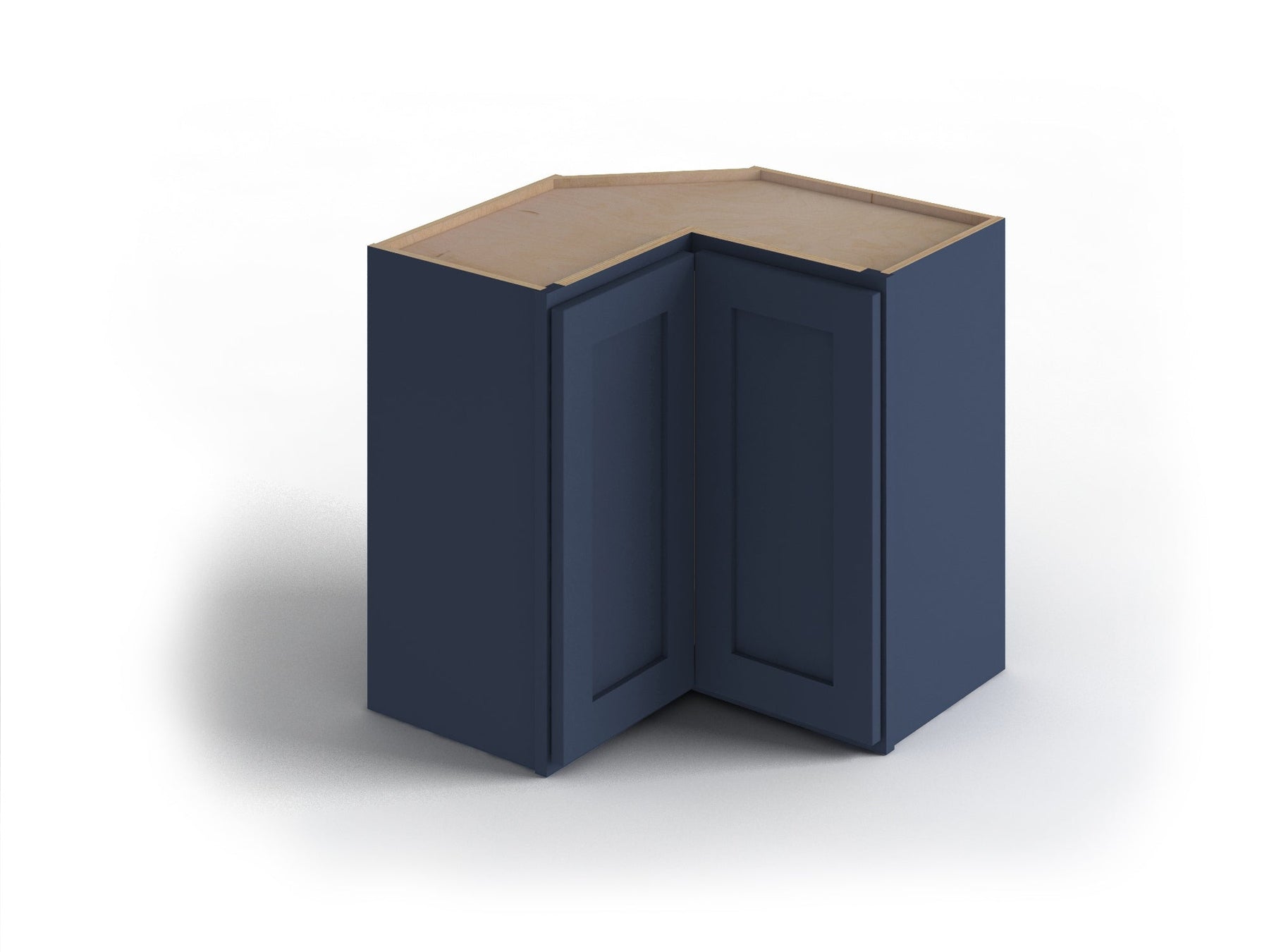 Organize your kitchen with the Valleywood Cabinetry L-Shaped Corner Wall Cabinet, crafted from premium birch in a stunning marine blue finish. This flat panel shaker style cabinet offers both beauty and functionality with its sturdy plywood construction and solid wood frames. Ideal for maximizing corner space, it's ready-to-assemble for efficient installation.