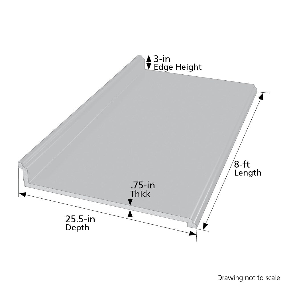 A: 96-in L x 25.5-in D x 0.75-in thick with a 3-in integrated backsplash.