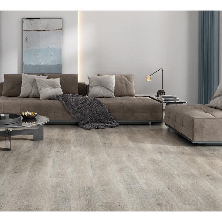 The Simsbury Glen Oak laminate flooring transforms any room into a haven of understated sophistication and warmth. Its authentic wood texture and elegant taupe tones create a serene foundation that enhances both traditional and contemporary interiors alike. Imagine pairing it with plush area rugs and sleek furniture for an inviting yet luxurious ambiance. Essential for refined living, this flooring doesn't just serve a function; it defines a lifestyle steeped in comfort and style.