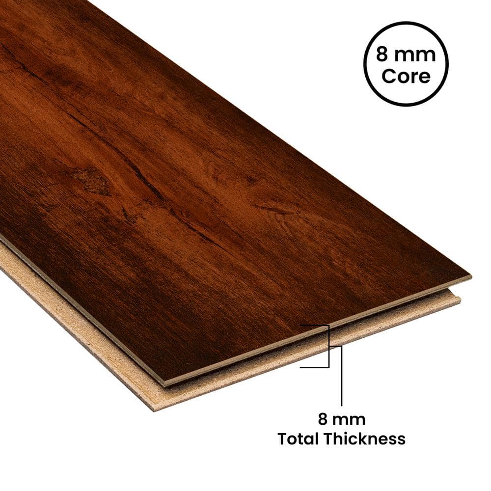 Elevate your home with the rich elegance of Maple Sevilla laminate wood flooring. Featuring a high-gloss distressed finish, this 8 mm flooring provides both upscale aesthetics and durability, ideal for high-traffic areas. Easy to install with a glue-free click lock system, this flooring is a cost-effective solution that also supports radiant heating.