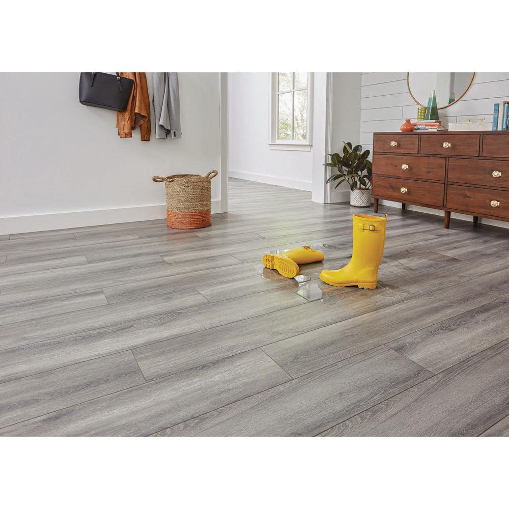 Elevate your space with Krono Original's Azalea Oak 10 mm Waterproof Laminate Wood Flooring, designed for both style and durability. Featuring a neutral gray hue with a realistic wood texture, it's ideal for high-traffic areas and homes with children or pets. With superior resistance to scratches and spills, plus an easy click-lock installation system, this flooring provides hassle-free maintenance and lasting beauty.