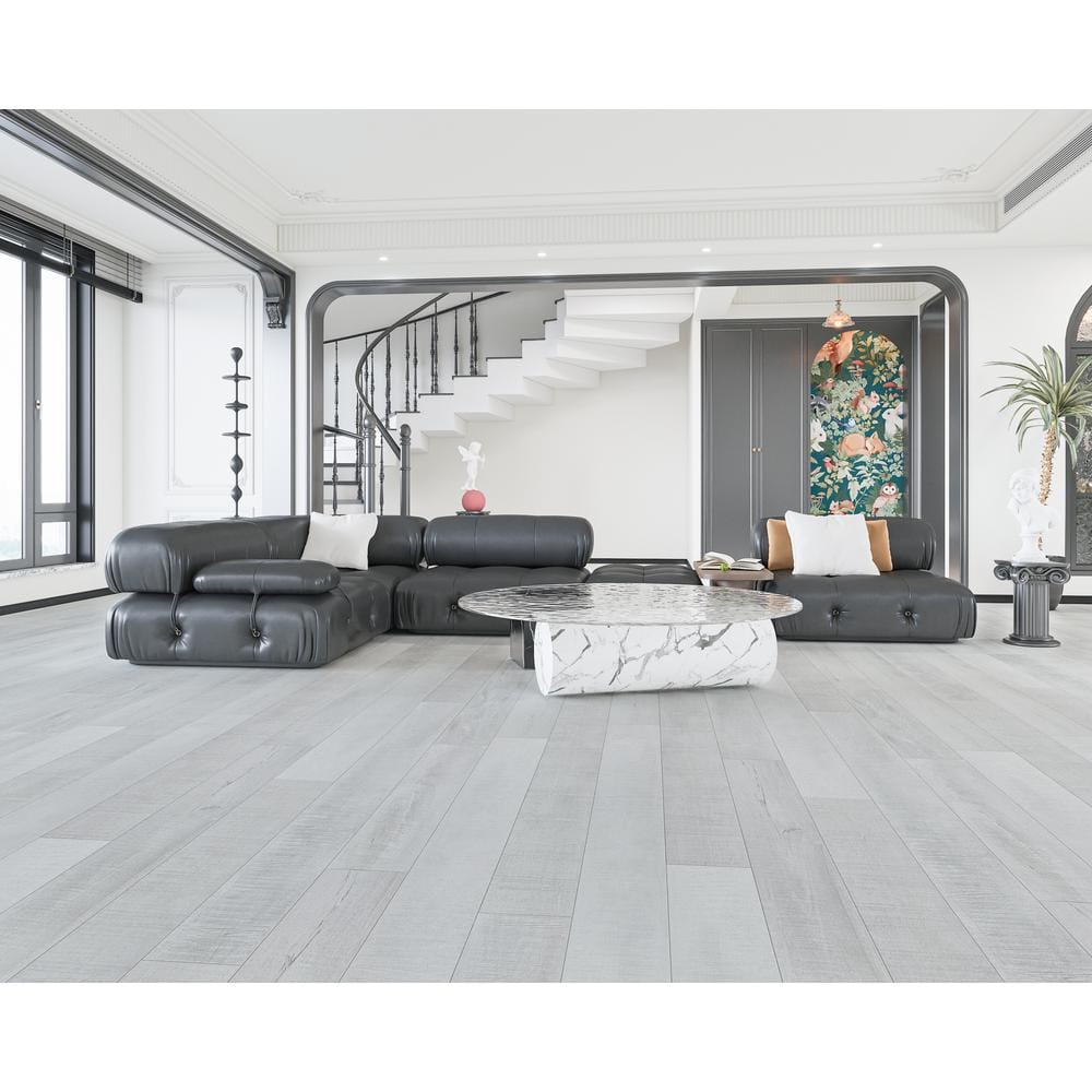 Experience a luxurious transformation in your home with Montserrat's Pristine White Laminate Flooring. The elegantly embossed texture and matte finish bring a whisper of grace to each step, while its durable, waterproof design offers peace of mind and timeless sophistication. Picture it complementing a minimalist Scandinavian-inspired living room or cascading through a sunlit hallway to bring an aura of tranquility and refinement. This flooring not only promises ease of maintenance but also epitomizes the essence of contemporary luxury living.
