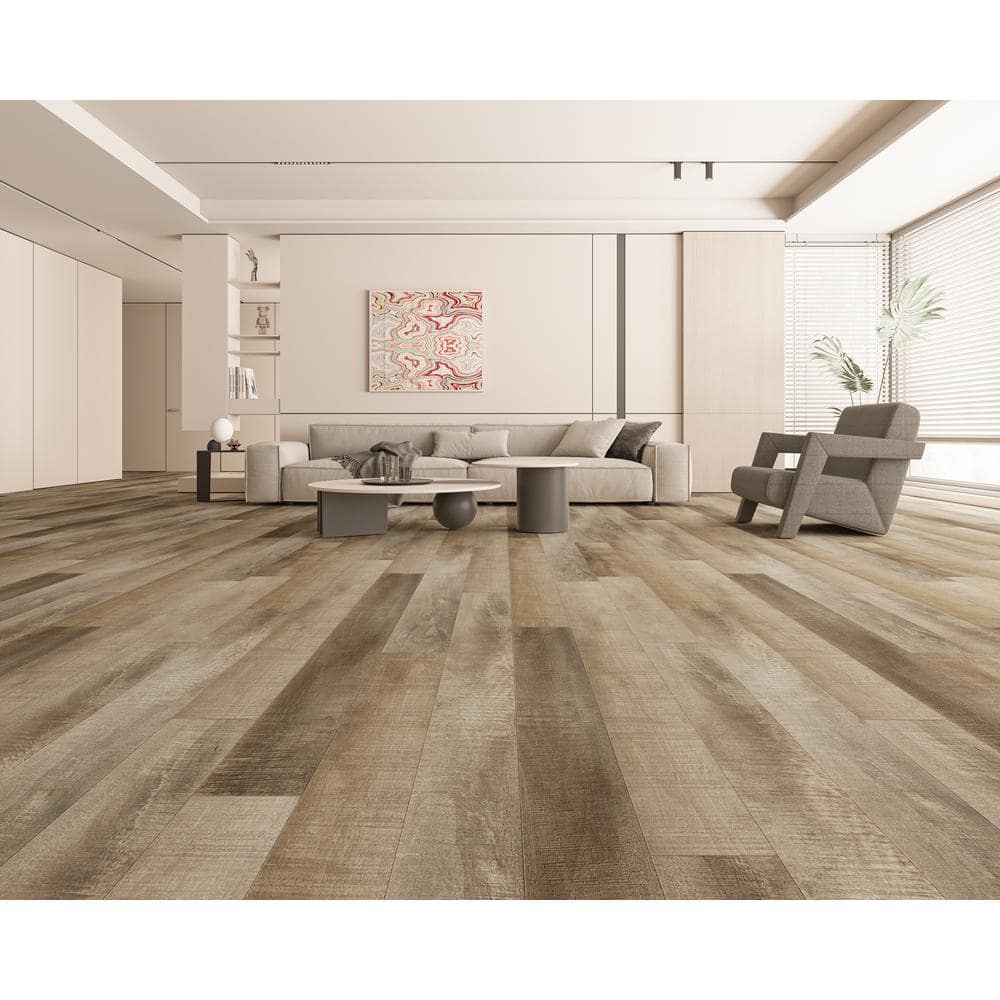 Step into luxury with the Montserrat Summa Refined Brass Flooring, an exquisite canvas of wood artistry that transforms any environment into a haven of sophistication. The rich bandsawn wood-grain texture evokes warmth and charm, effortlessly complementing modern minimalist or classic interiors. Arrange it in open floor plans to maintain a seamless visual flow, marrying practicality with beauty. This flooring is not just a surface; it’s the foundation of luxurious living that breathes life into your home.