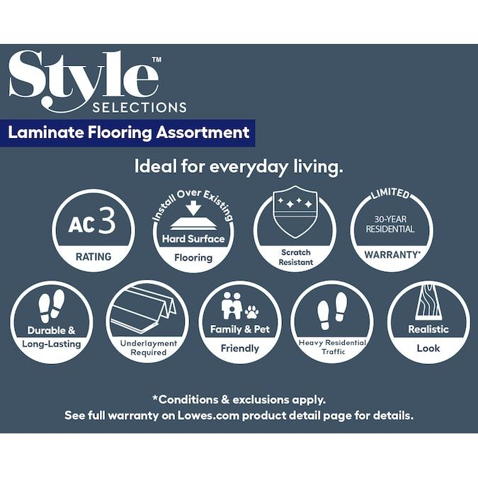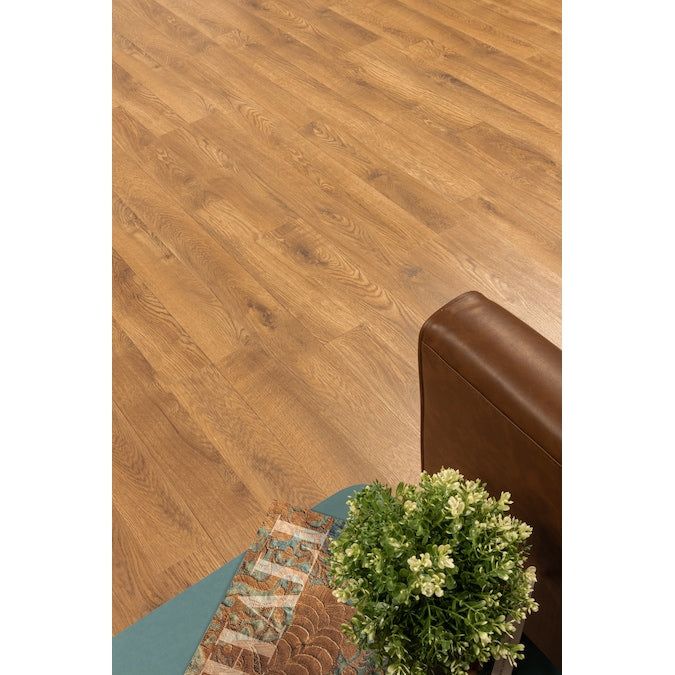 Transform your space with Style Selections' Acorn Oak Laminate Flooring, offering the timeless beauty of oak with a rich copper brown finish. Perfect for high-traffic areas, this flooring is scratch-resistant and durable, providing an affordable, long-lasting solution for your home project needs.