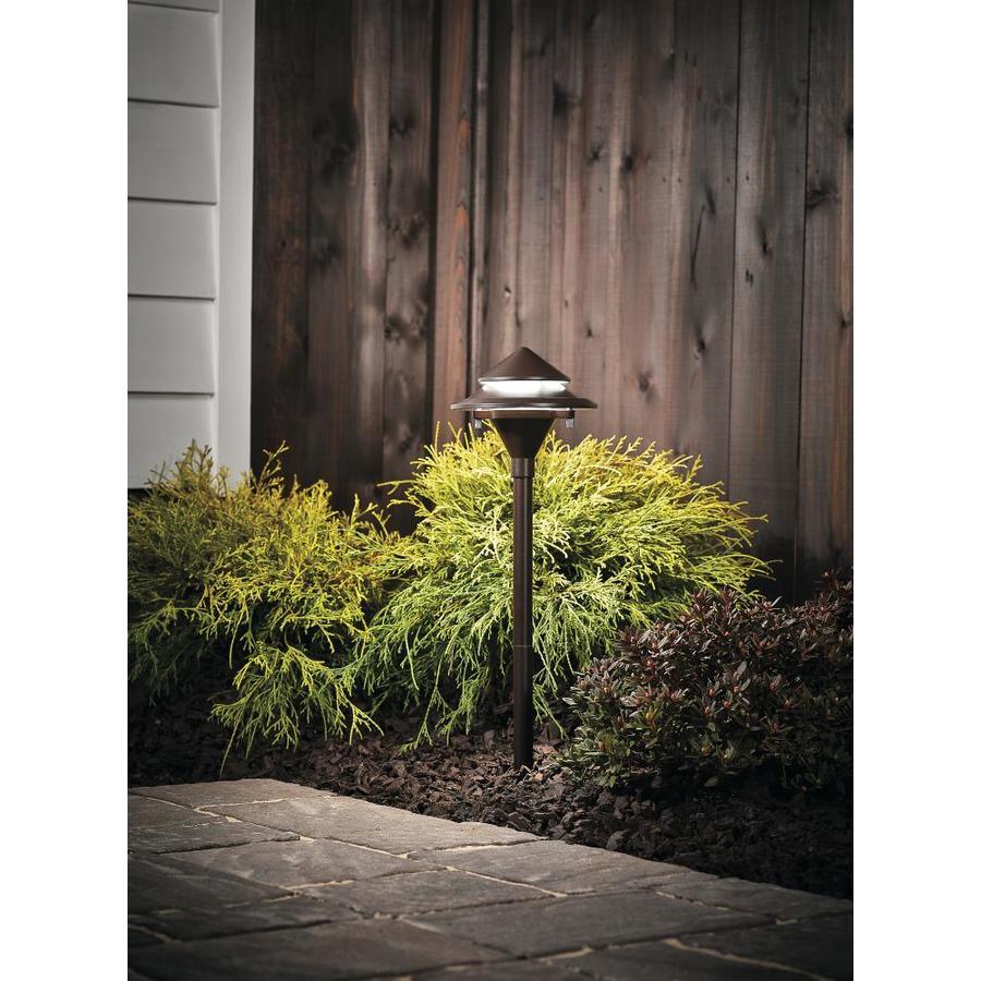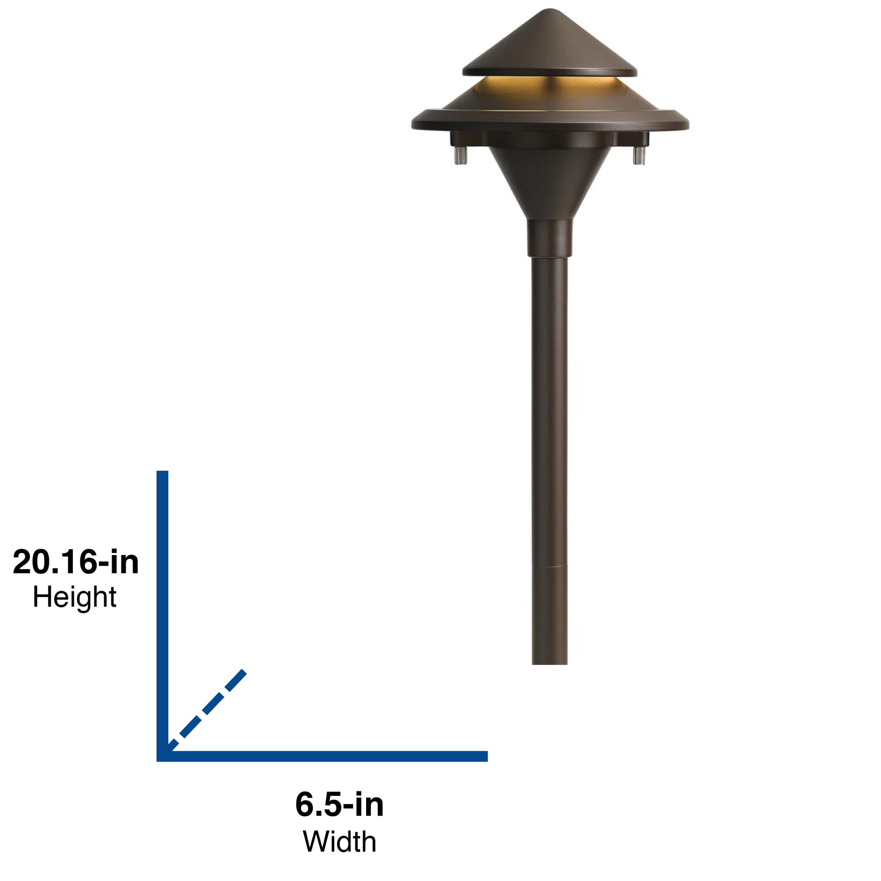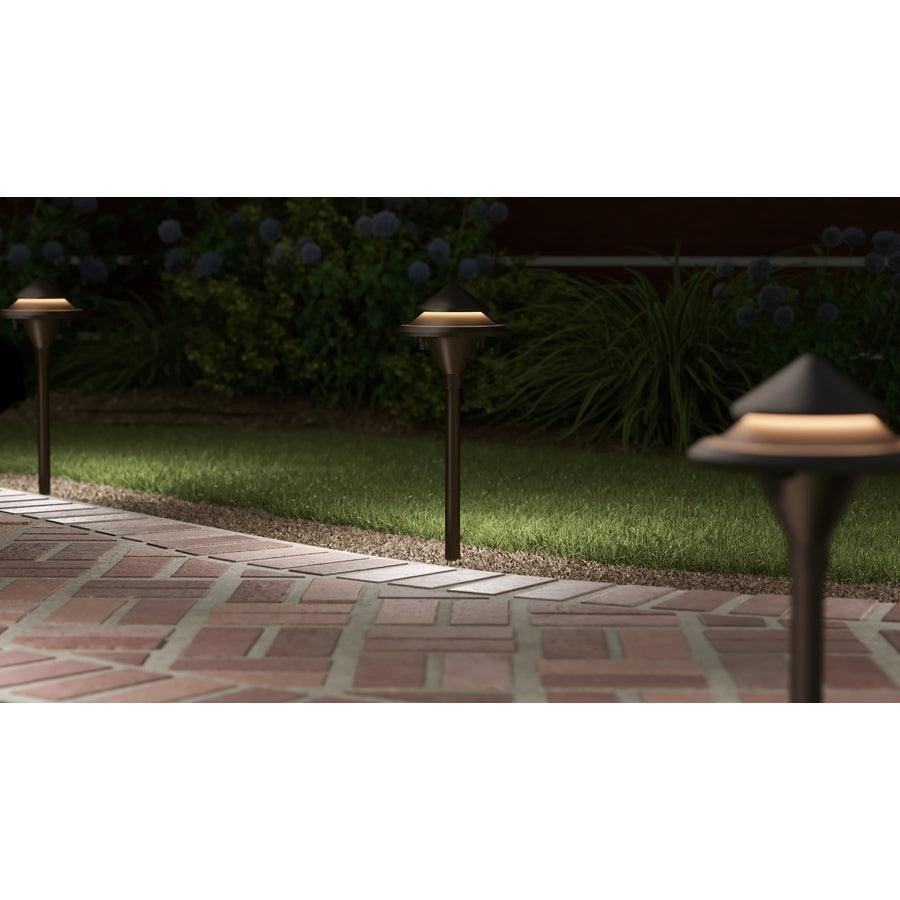 A durable, all-weather Kichler path light in Olde Bronze that delivers warm 3000K illumination for sidewalks and gardens. Hardwired low-voltage design with aluminum construction and sealed, dust-proof bulb withstands irrigation spray.