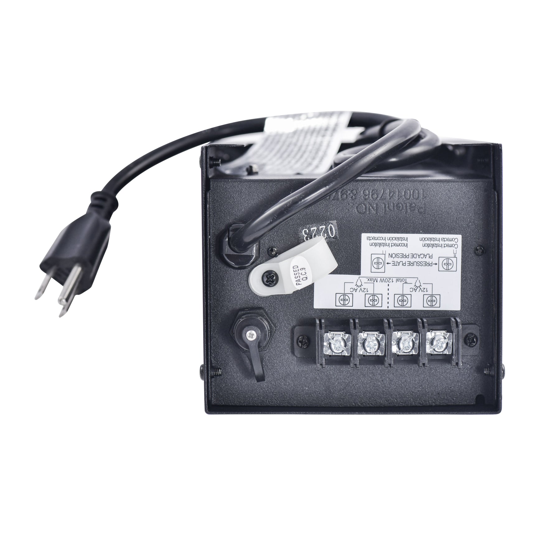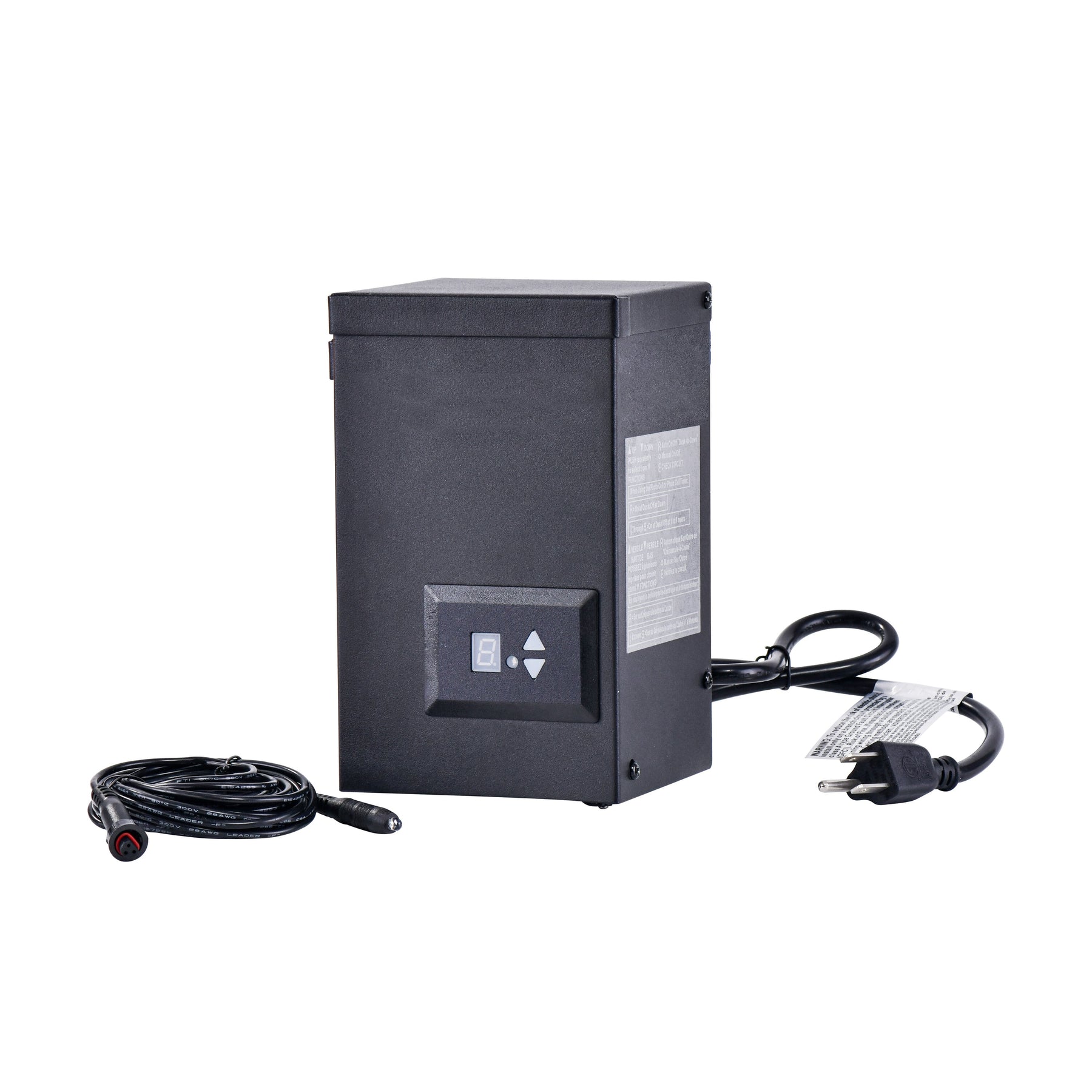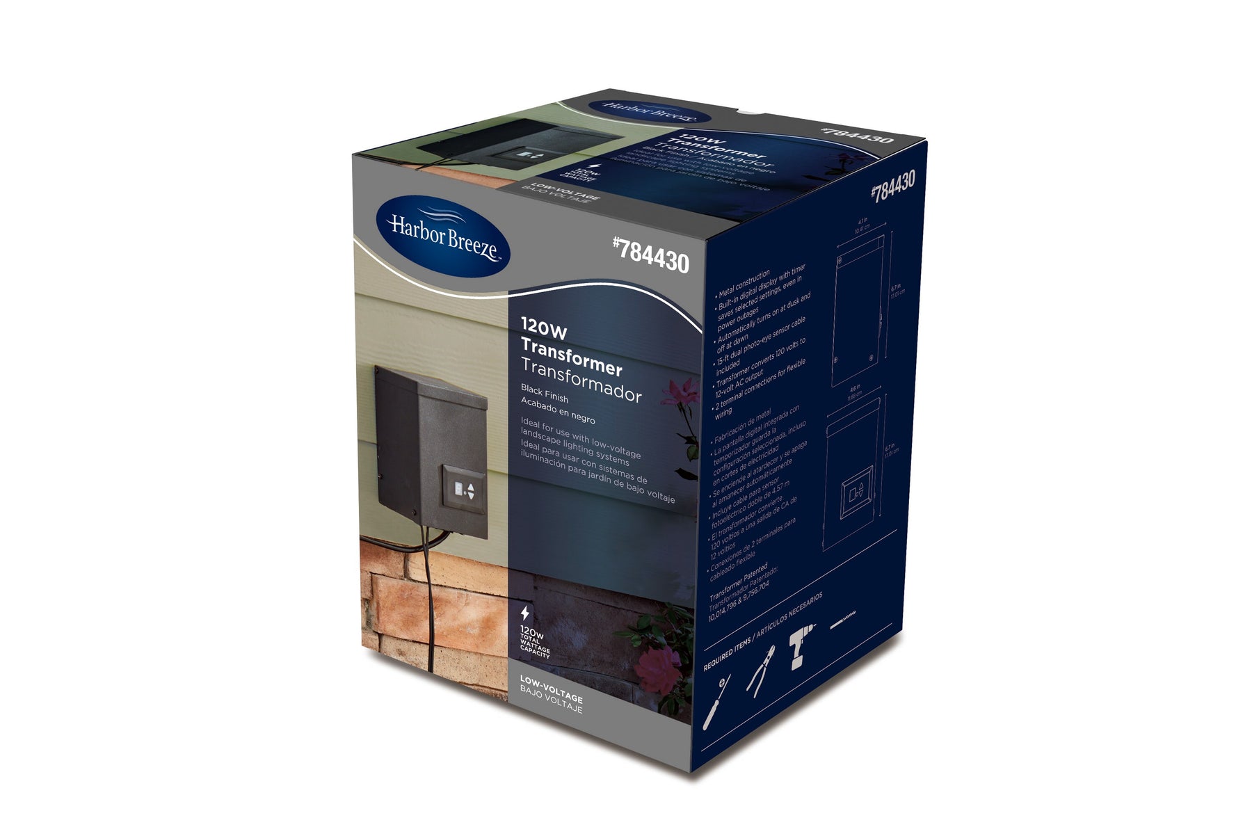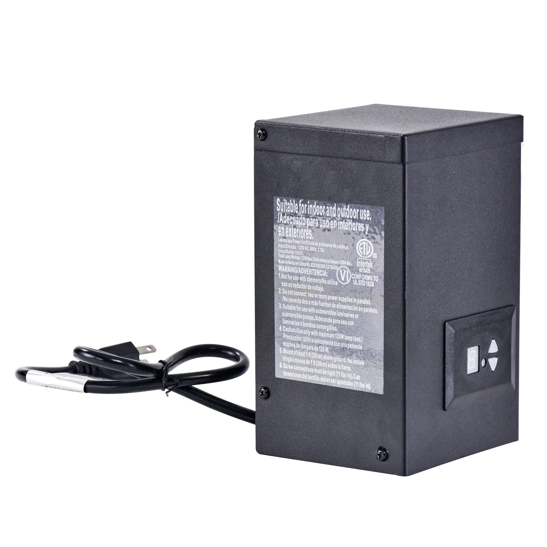 A: It’s a 12-volt, 120-watt low-voltage transformer designed for landscape lighting systems.
