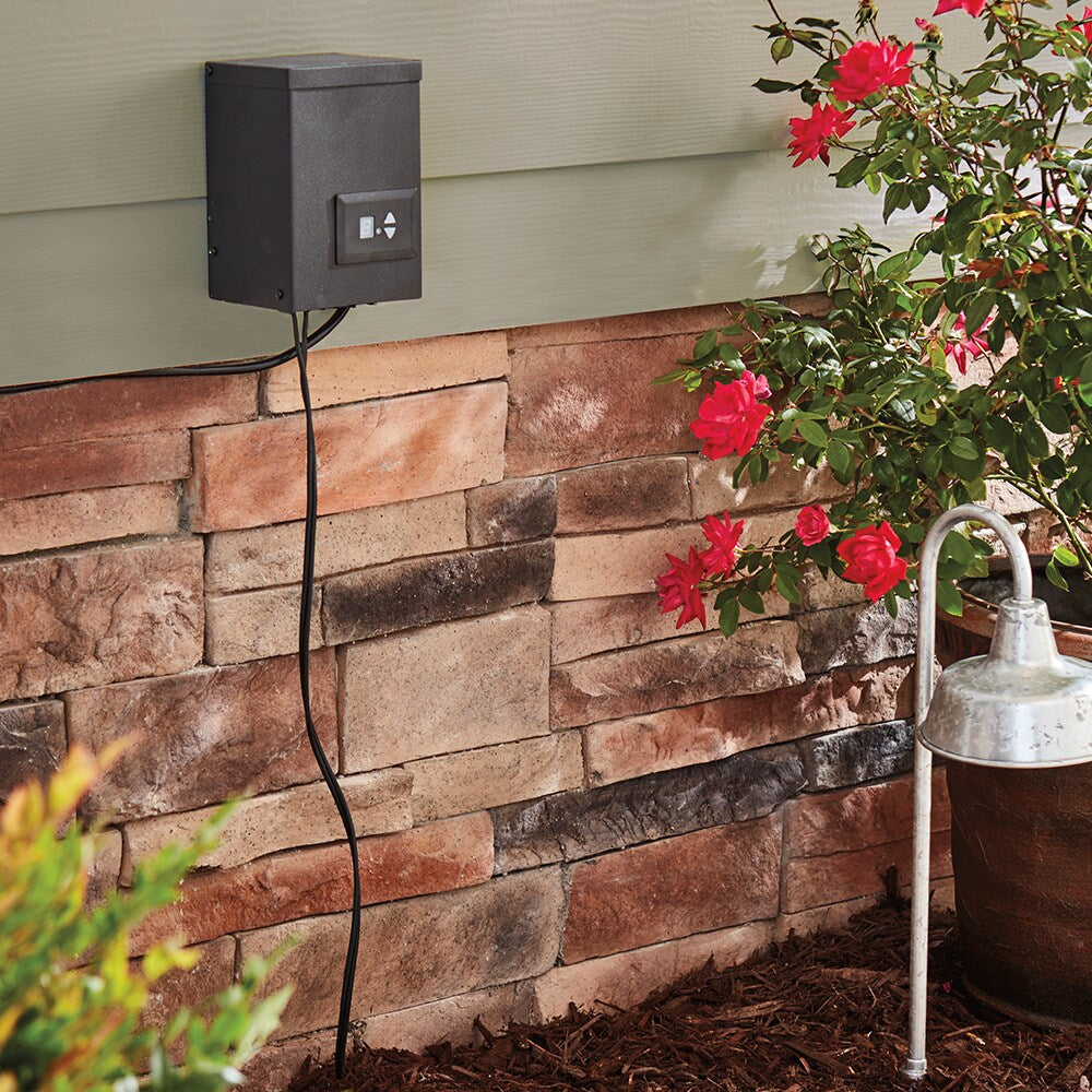 Power your low-voltage landscape lights with this 120-watt multi-tap transformer featuring a built-in digital timer and dusk-to-dawn sensor. Steel construction, easy setup, and dual photo eye options deliver reliable, flexible outdoor lighting control.