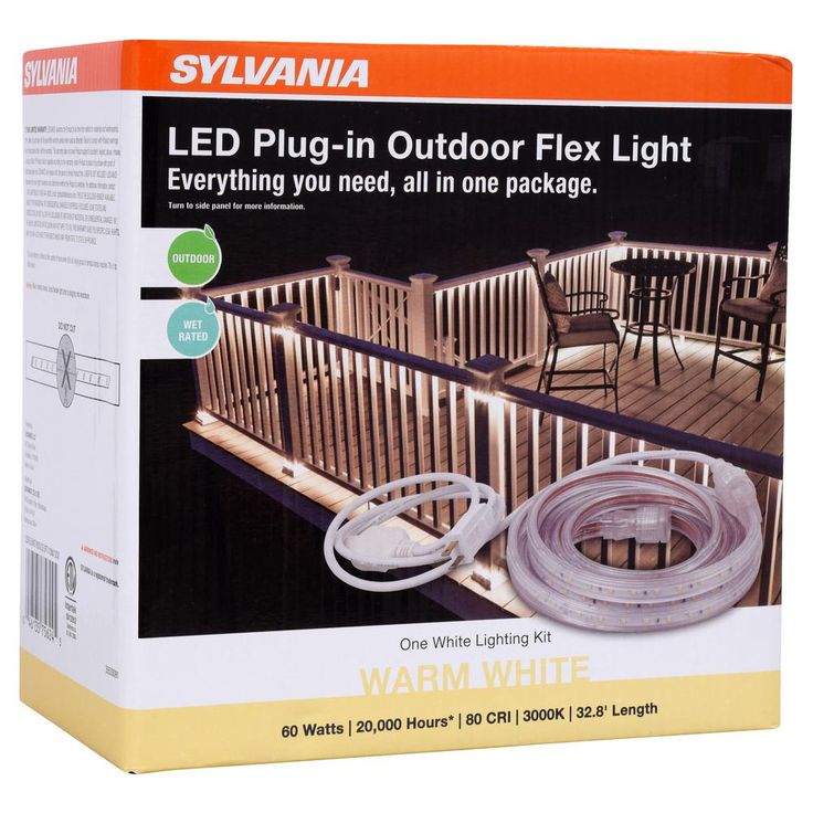Sylvania LED Plug-In Outdoor Flex Light offers a complete solution for your lighting needs. Suitable for outdoor use year-round. The kit includes strip, AC power cord, clips and screws as well as a full guide to installation. With LED enjoy long life and low power usage.